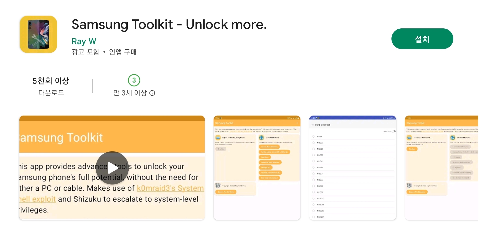 다운그레이드가 끝났다면 먼저 플레이스토어에서 Samsung Toolkit과 Shizuku를 다운받아 설치한다.