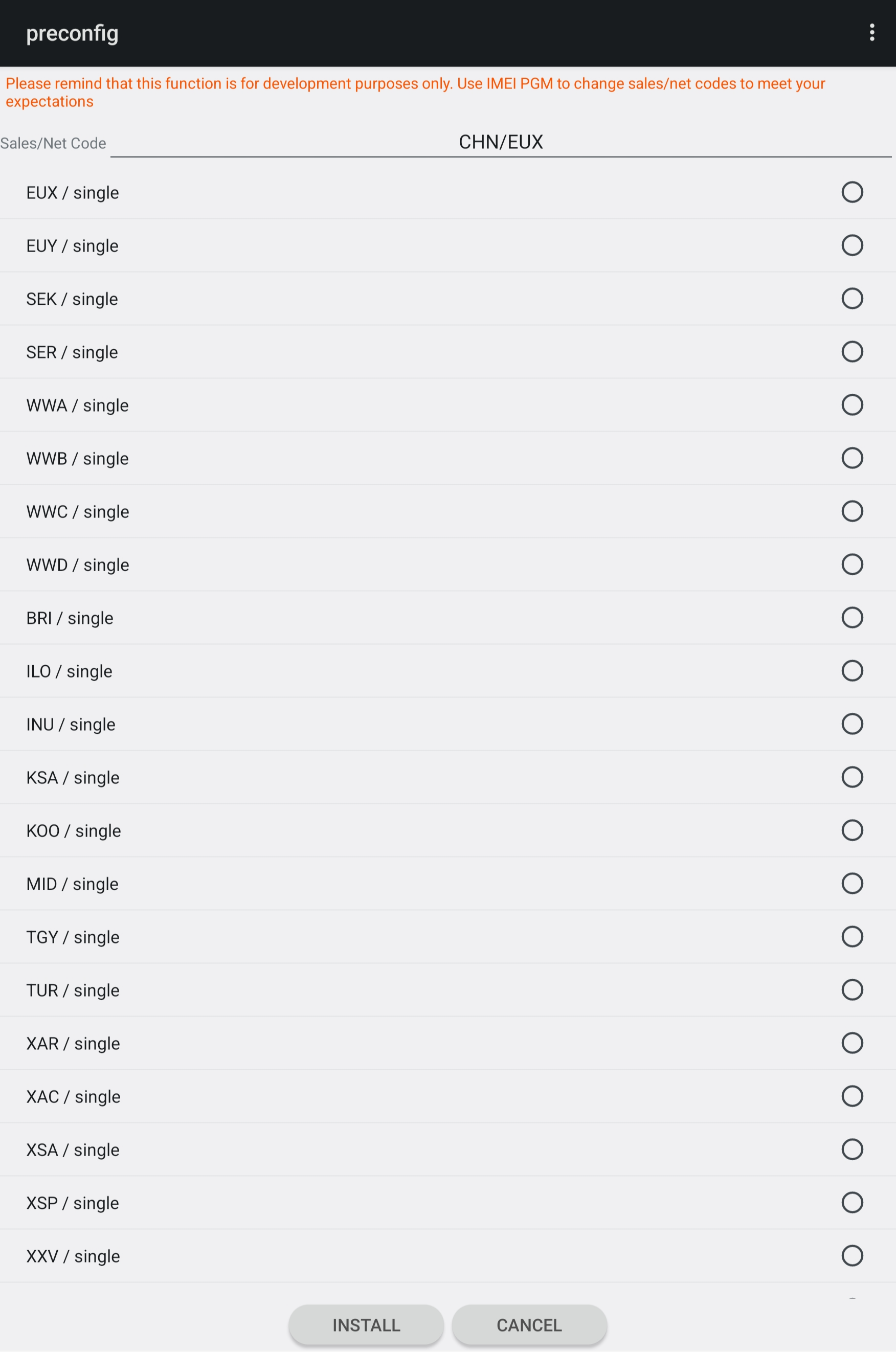 권한 획득이 끝났다면 오른쪽 메뉴들중에서 Change CSC를 눌러 CSC 선택창에서 원하는 지역코드를 선택하고 Install을 누르면 태블릿이 리셋되면서 해당 지역 버전 롬으로 교체된다.