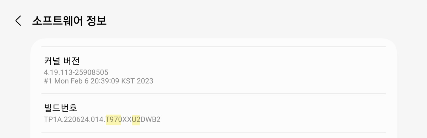 먼저 설정 - 태블릿 정보 - 소프트웨어 정보에 들어가서 빌드번호를 확인한다. 앞 4자리는 모델명을 의미하고, U로 시작하는 부분은 부트로더 버전을 의미하는데, 펌웨어 다운그레이드는 같은 부트로더 버전끼리만 가능하기 때문에 만약 머지않은 미래에 이 글을 읽고있는 당신의 태블릿에는 저 숫자가 3 이상으로 올라가있다면 아마도 다른 방법을 찾아야할거다.