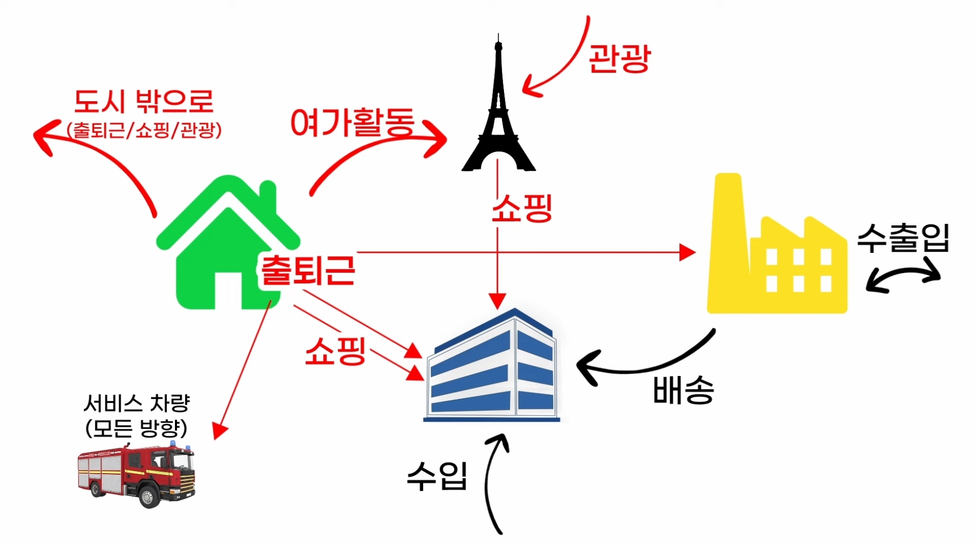 - 도시 외부에서 오는 관광객들은 거의 대부분 관광지 (공원, 고유건물 등) 를 방문하거나 상업구역에 가서 쇼핑을 즐긴다. 특히 고유건물같은 사람들이 대거 방문하는 관광지는 도시 외부와 연결되는 교통수단 (기차, 공항 등) 과 가깝게 배치하거나, 지하철같은 대용량 교통수단으로 연결해주는게 이상적이다.