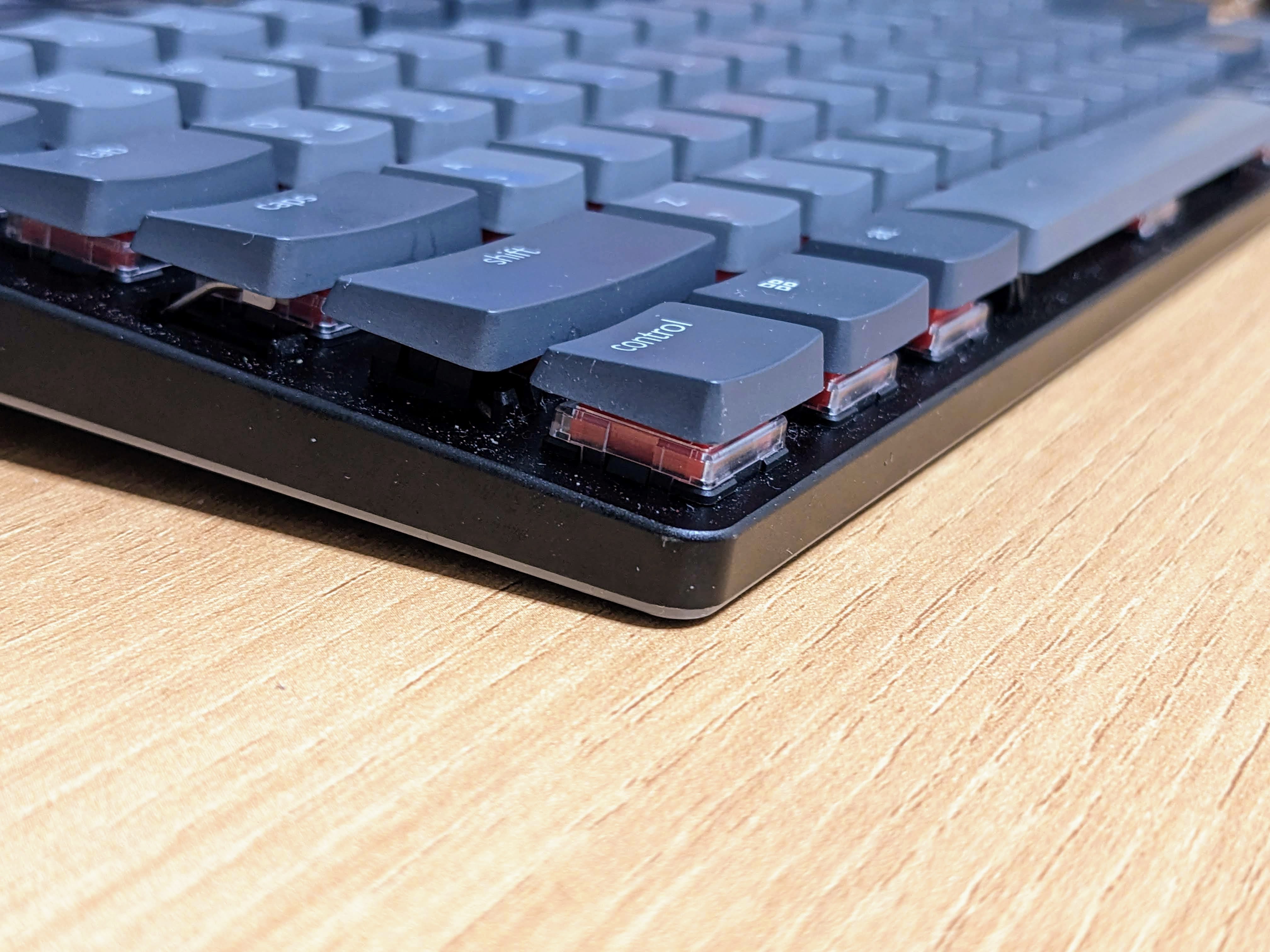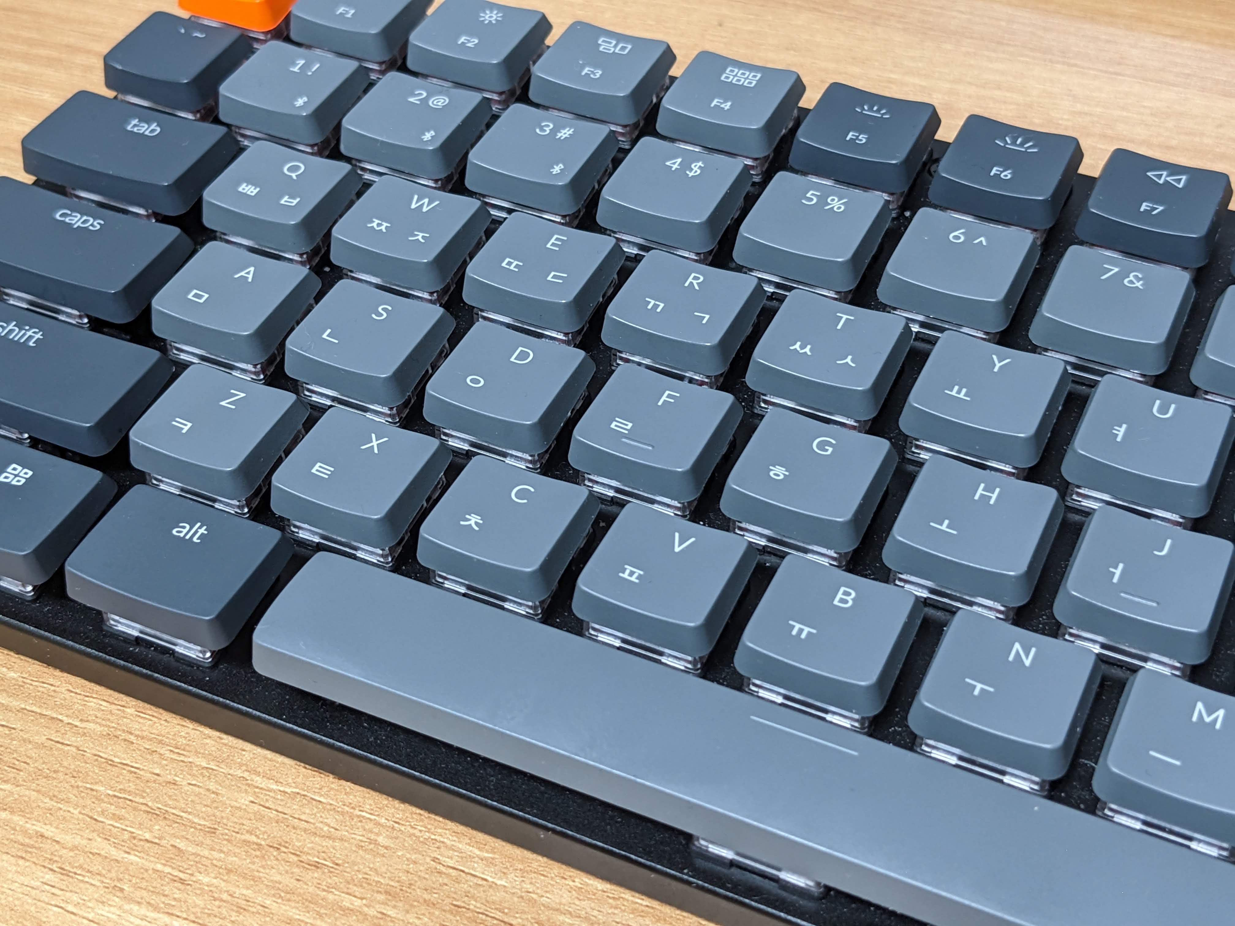 로우 프로파일 키보드다보니 디자인은 일반적으로 우리가 알고있는 기계식 키보드와 많이 다른 모습이다. 키캡의 두께가 더 얇고, 키캡 사이의 틈도 더 크다.