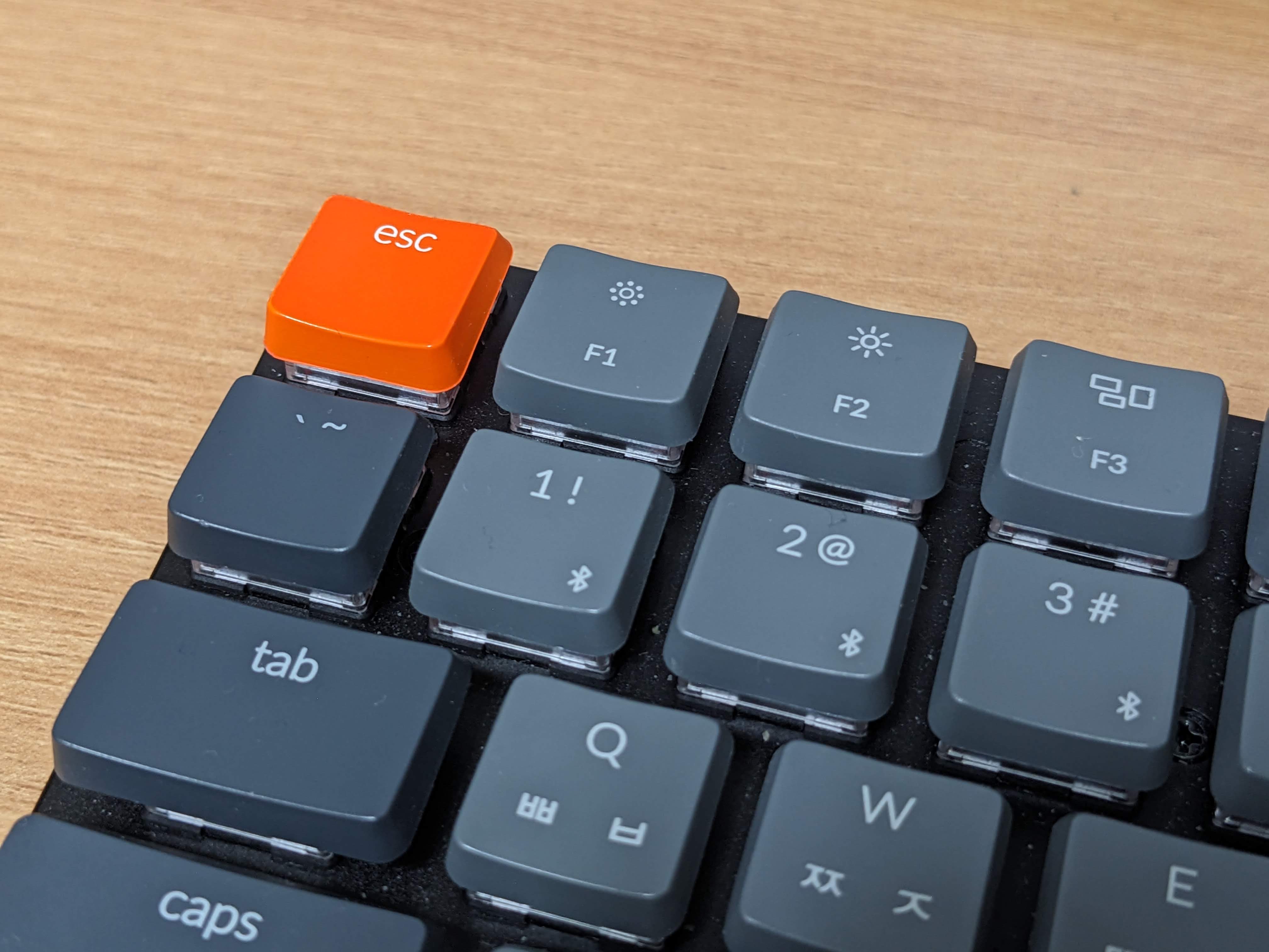 esc키와 백라이트키는 눈에 확 띄는 주황색으로 아주 강렬한 포인트를 남겨주는데, 개인적으로는 이런 디자인을 매우 좋아하지만 그렇지 않다면 여분으로 제공하는 회색 키캡으로 교체해서 사용하면 된다.