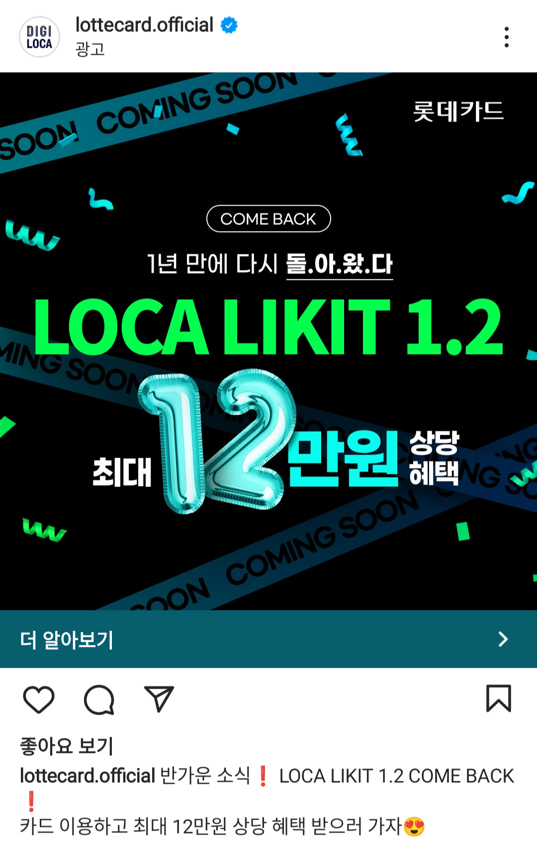 원래는 1년치 연회비라도 더 아낄 겸 신한 네이버페이 체크카드의 혜택을 최대한 뽑아먹고 내년 출국 직전에 신용카드를 만들 계획이었지만, 얼마 전 인스타그램에서 로카 라이킷 1.2 신규발급 캐시백 이벤트를 한다는 광고가 떴고 "기회는 지금 뿐이다!" 라는 생각에 고민 없이 이벤트를 응모하고, 롯데카드 홈페이지에 들어가서 카드를 신청했다.