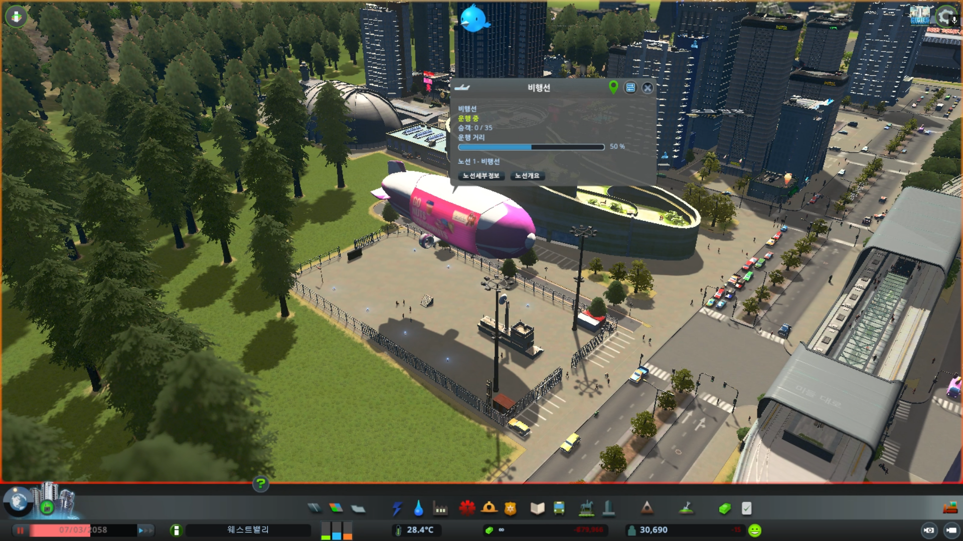 인더스트리 DLC를 구매하면 화물 공항이 추가되고, 공항 DLC를 구매하면 아예 공항 영역을 지정하여 직접 공항을 만드는게 가능한데, 나는 두 DLC 모두 구매하지 않은 관계로 패스.
