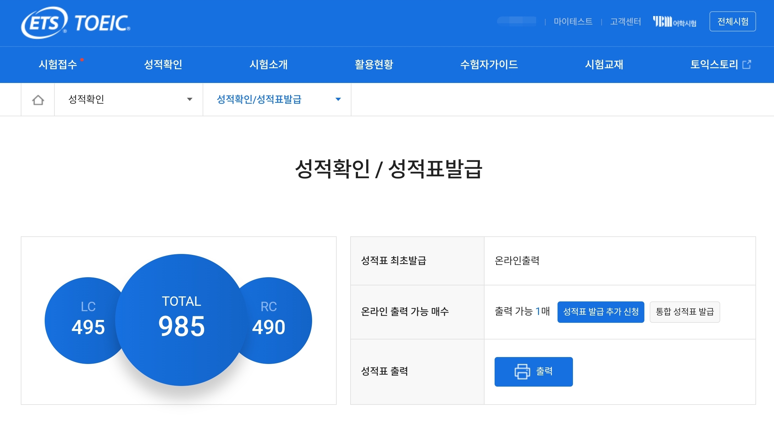 LC 495점에 RC 490점! 만점에서 딱 5점 모자란게 아쉽지만 그래도 예상보다 훨씬 점수가 잘 나와 만족한다.
