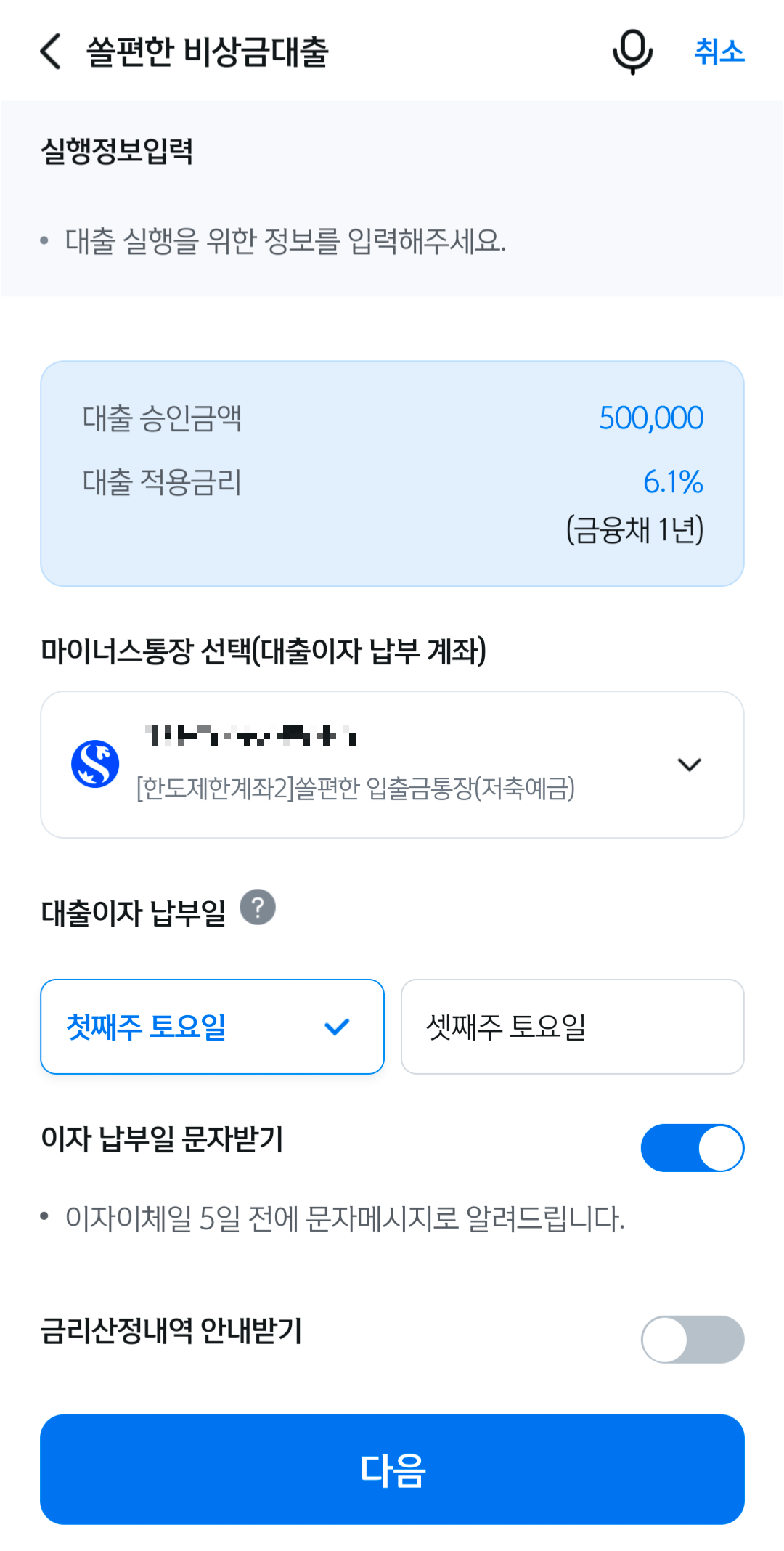 대출이자 납부 계좌는 반드시 한도해제를 진행할 계좌를 선택한다. 다른 한도제한 없는 계좌를 선택하면 말짱 도루묵이다.