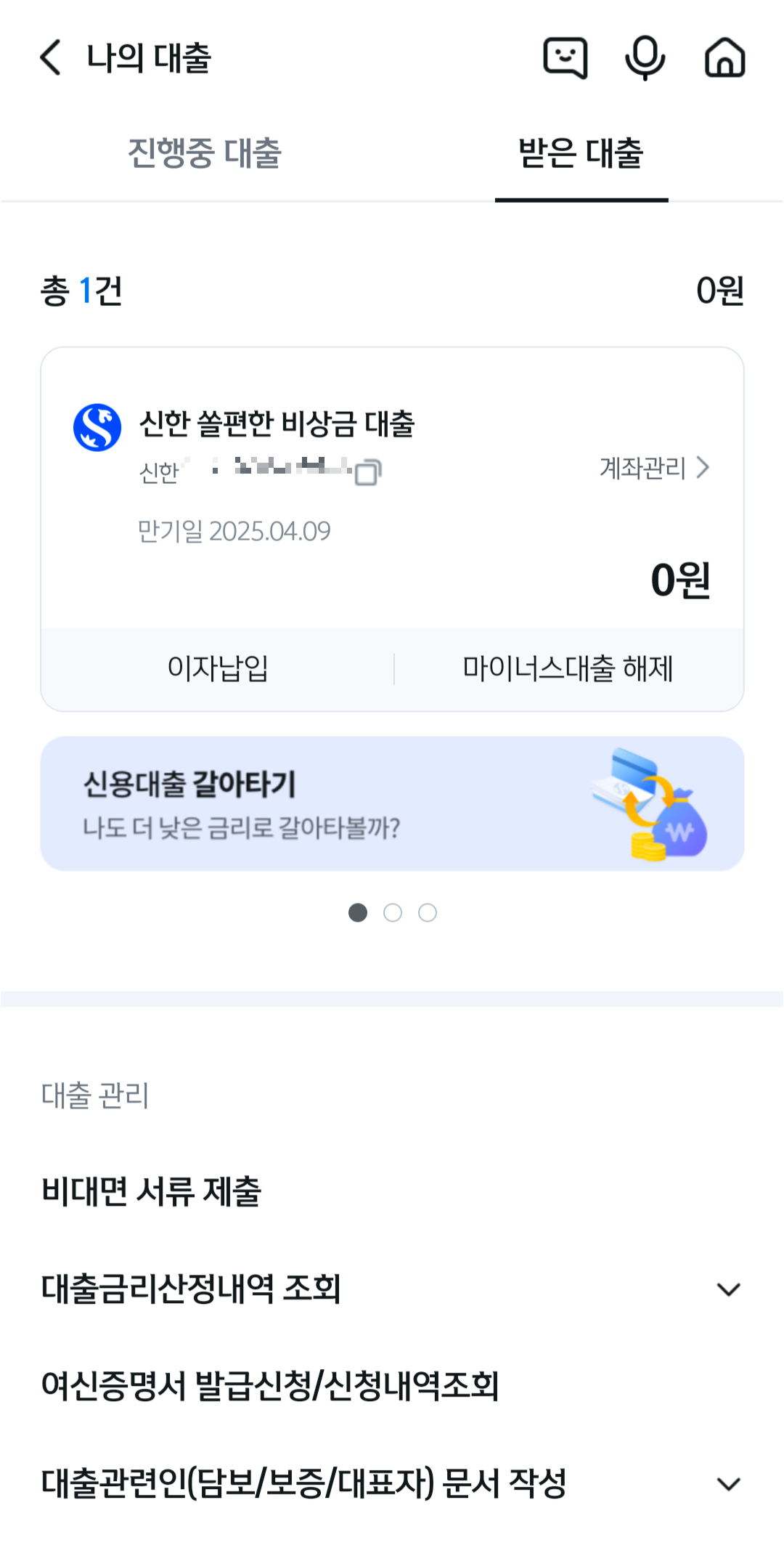 하지만 한도제한계좌2도 모바일 뱅킹 이체 한도가 하루에 150만원에 불과해 만기된 예적금같은 목돈을 인출할때 불편함이 존재한다. 나는 군적금 계좌 하나를 신한은행에 들어놨고, 복학 후 중국에서 환전용으로 쏠 트래블 카드를 만들수도 있는데 카드에 한도계좌가 엮여있으면 불편해질 수 있어서, 인터넷에서 우연히 찾은 소액 대출을 받고 바로 상환하는(...) 방법으로 아주 간단하게 계좌 한도제한을 풀어버렸다.