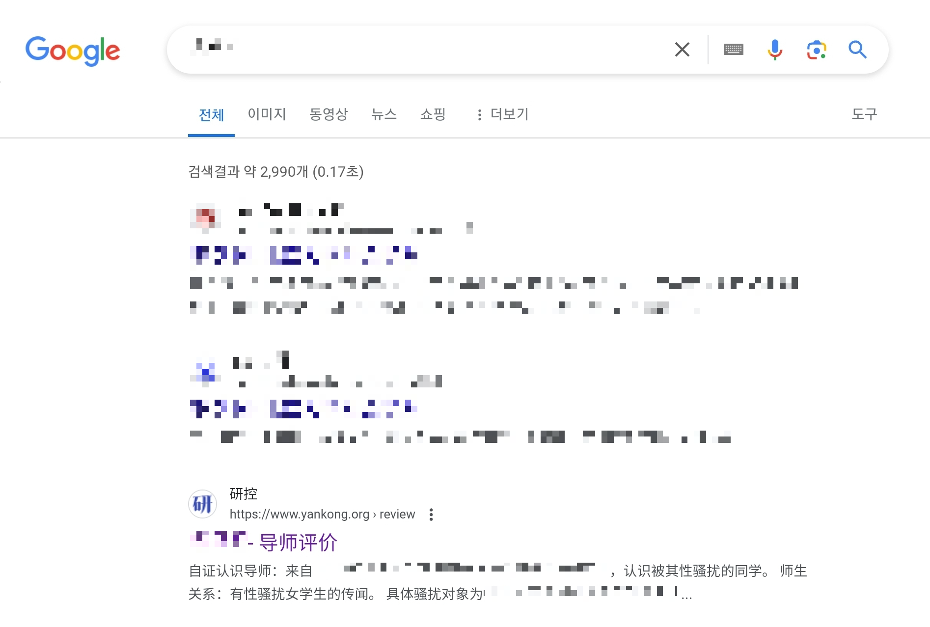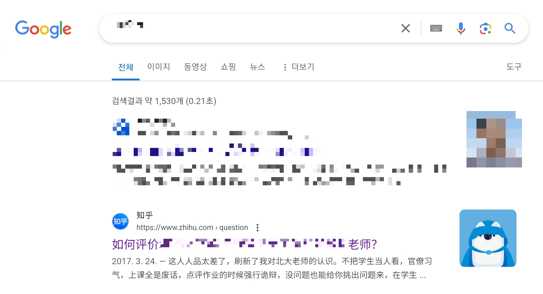 우선 교수님의 성함을 구글링해본다. 대부분 별 내용이 나오지 않겠지만, 공론화가 됐을 정도로 정말 심각한 결함이 있는 교수라면 높은 확률로 부정적인 평가들이 바로 뜬다. 바이두에는 이런 내용들은 거의 다 검열됐으니 무조건 구글로 검색할것.