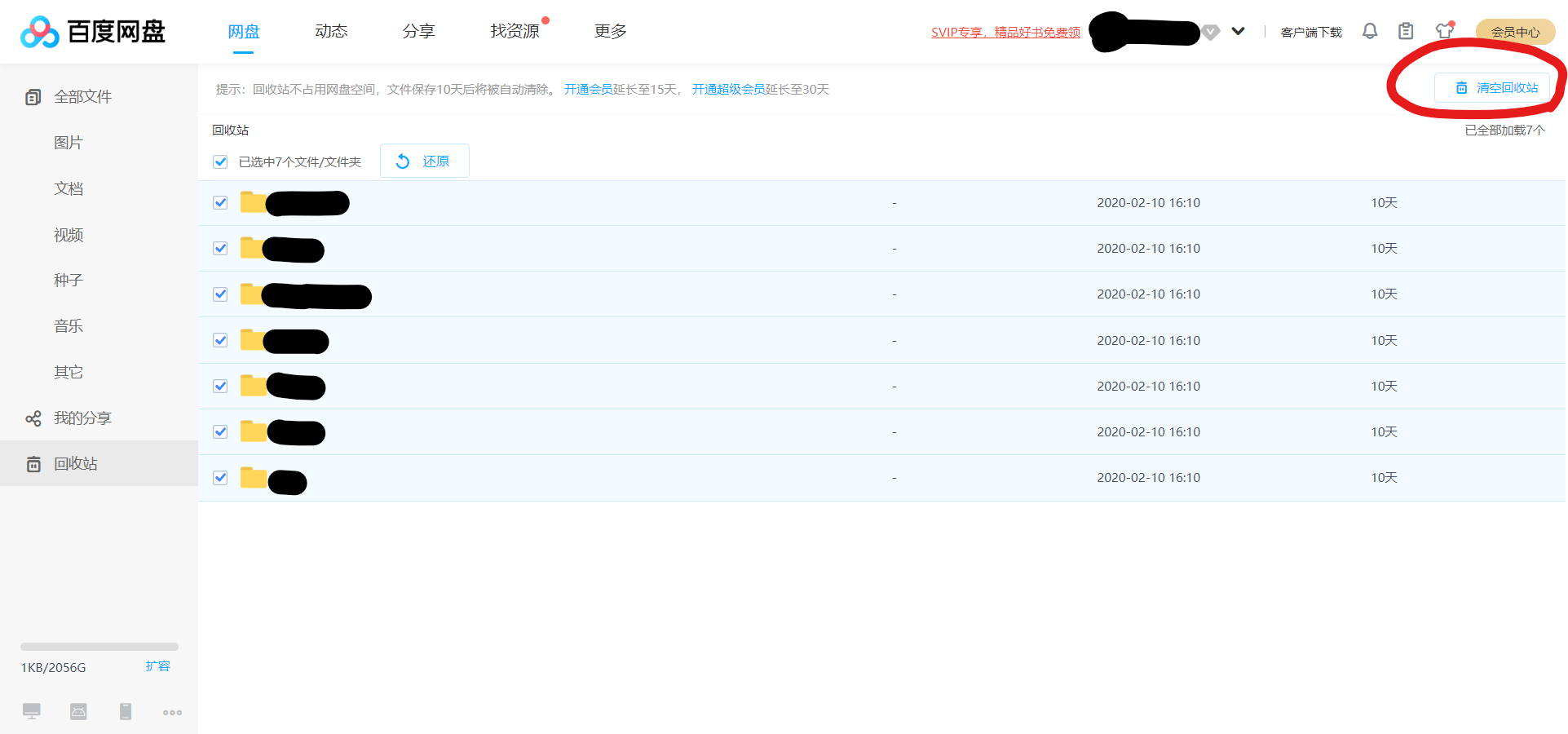 바이두 클라우드에 묵혀놓은 대용량 파일들이 문제였다.