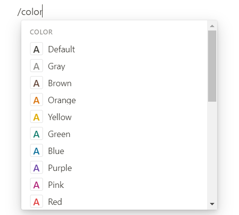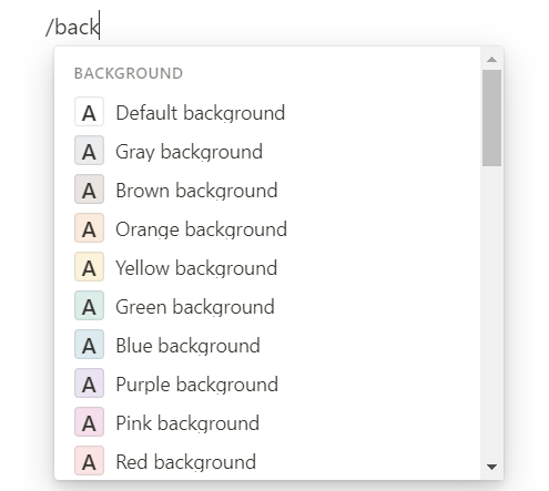 글씨 색상, 배경 색상 등 서식 설정 역시 슬래시로 변환이 가능하다.