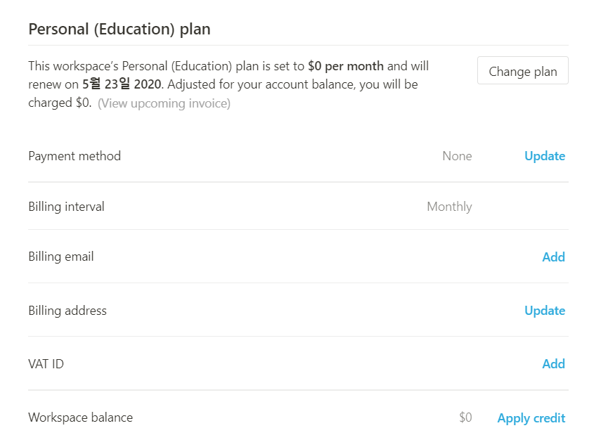 설정에 Upgrade에 있는 Get Free Education Plan 버튼을 누르면