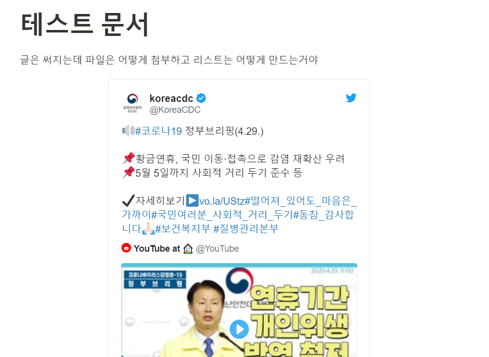 구글 드라이브, 트위터, pdf파일, 구글 지도 등 내용들은 첨부파일이나 링크에 그치는게 아닌