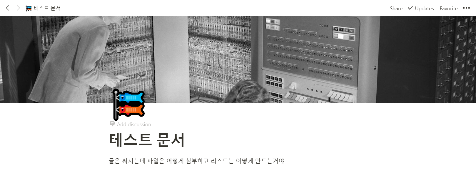 위에 마우스를 올려 "add cover"를 눌러 커버 사진 추가가 가능하다.
