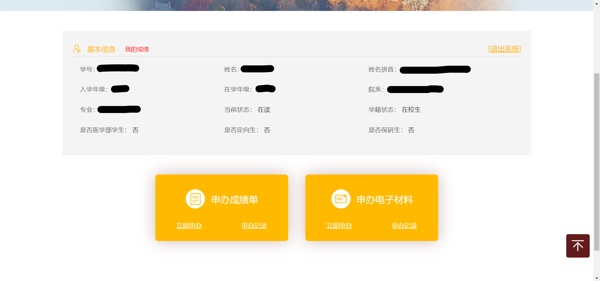 성적표 신청하는거여도 왼쪽 申办成绩单 누르지 말것. 이유는 밑에 설명.