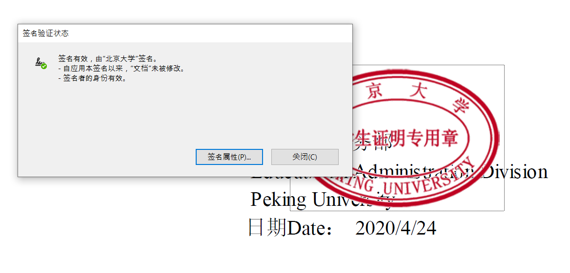 대충 "북경대학"에서 서명하였으며 문서 작성 이후 수정되지 않았다는 뜻.