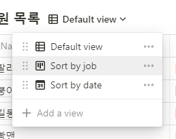 각 데이터베이스 제목 옆 Add a view를 누르면 기본으로 설정된 view 외에