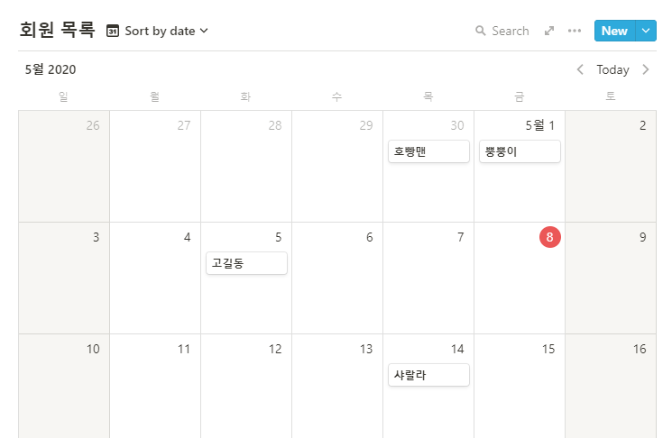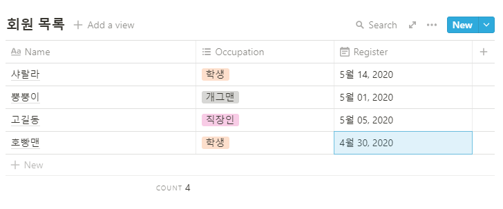 노션으로 모 동호회의 회원 리스트를 관리해야하는 상황을 가정해보자면,