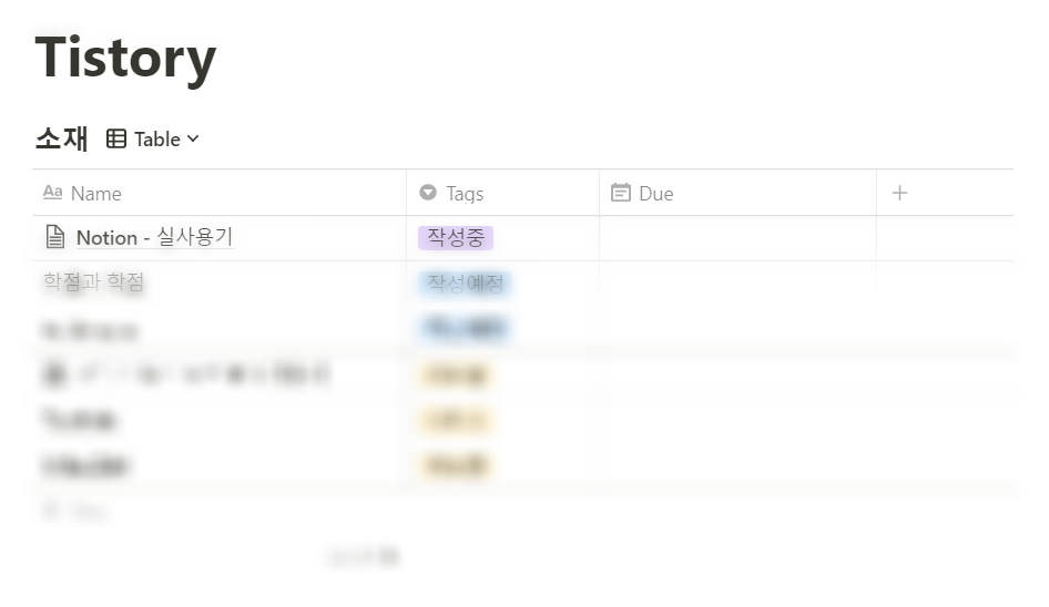 예를 들면 포스팅 소재 관리처럼 부수적인 태그나 메모를 많이 첨부해야하는데는 투두보다 노션이 적합하나