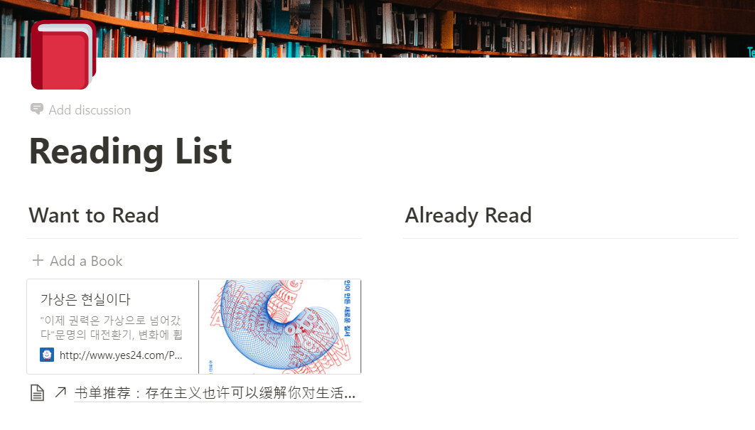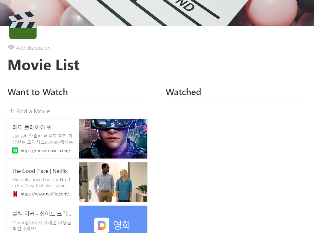 또한 템플릿 기능 덕분에 항상 어떻게 정리할지 고민이었던 독서 리스트와 나중에 볼 영화 리스트도 노션으로 만들었다.