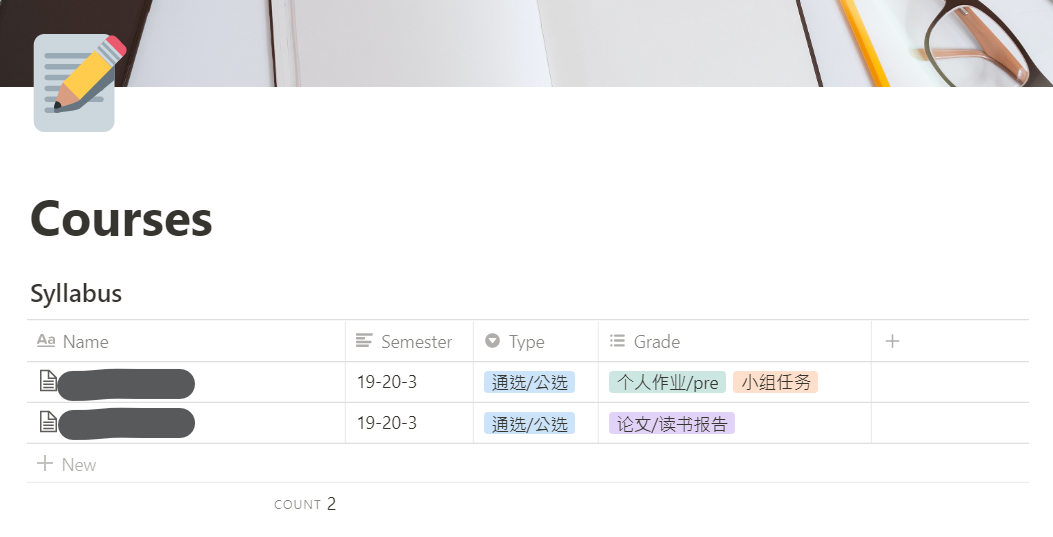 과목별로 페이지를 생성하여 Syllabus를 복붙하여 그대로 보관할 수 있으니