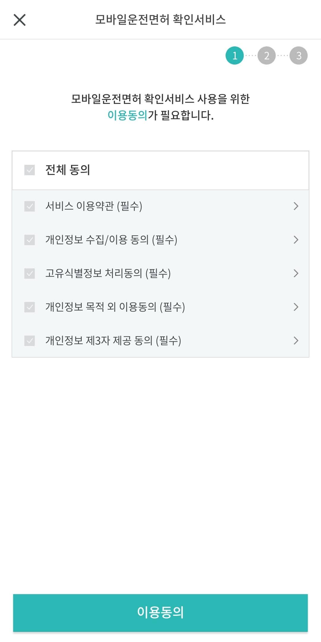 저기서 "상세보기"를 누르면 운전면허증 번호, 종류(2종보통), 생년월일, 갱신기간, 발급일이 나온다.