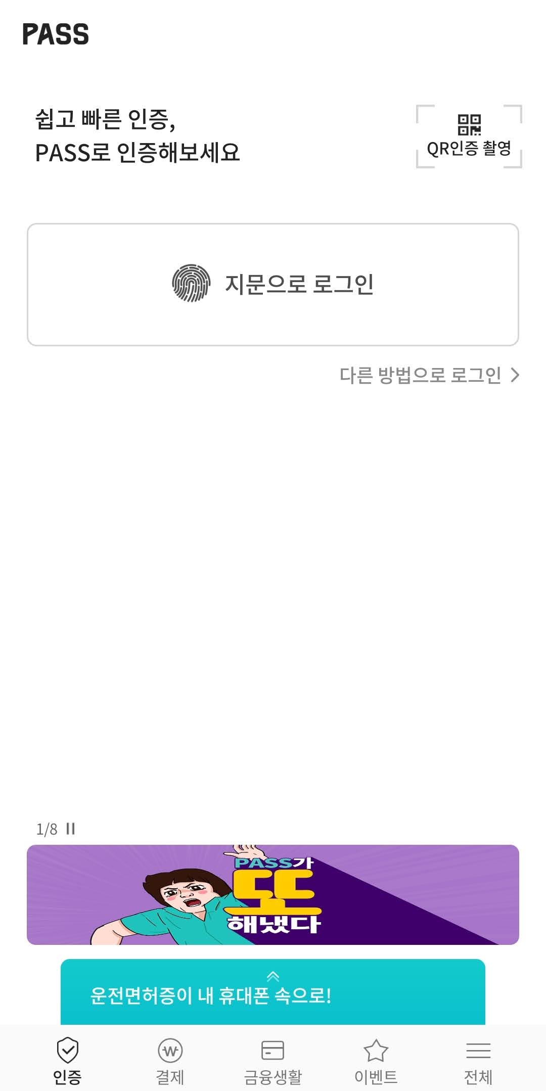 우선 플레이스토어에서 자신의 통신사에 맞는 PASS앱을 다운받는다. 휴대폰 본인인증할때 하도 "문자 없이 간편 본인인증" 광고해대는 그 앱 맞다. 알뜰폰 사용자라면 자신의 통신사가 사용하는 망을 따라가면 된다. (예를들면 kt엠모바일은 PASS by KT, 헬로모바일 유플러스망은 PASS by U+. 근데 차라리 원스토어처럼 3사 통합시키면 안되나?)