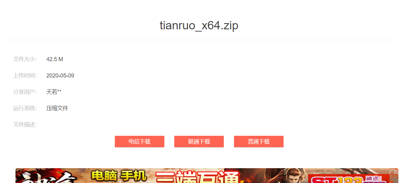 다운로드 버튼이 电信下载(차이나텔레콤 다운로드)、联通下载(차이나유니콤 다운로드)、普通下载(일반 다운로드)가 나오는데 앞 두개는 괜히 이상한 프로그램 다운받으라고 할까봐 일반 다운로드를 클릭했다.