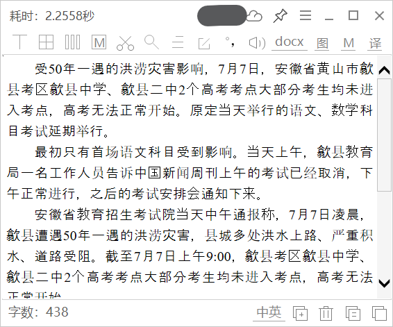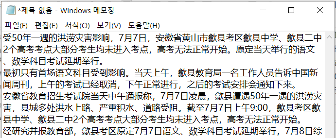 오로지 중국어와 숫자밖에 없고 강제개행이 없는 뉴스 기사는 인식 정확도가 더 높았다.