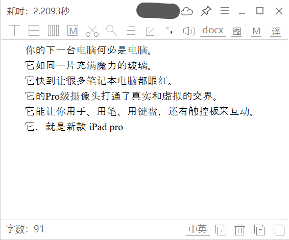 你的下一台电脑,何必是电脑 문장 중간의 쉼표를 빠뜨리고 두 줄을 한 줄로 인식한것과, 마지막 Pro의 P가 대문자가 아니고 마침표를 빠뜨린 것 외에는 전혀 오차가 없었다.