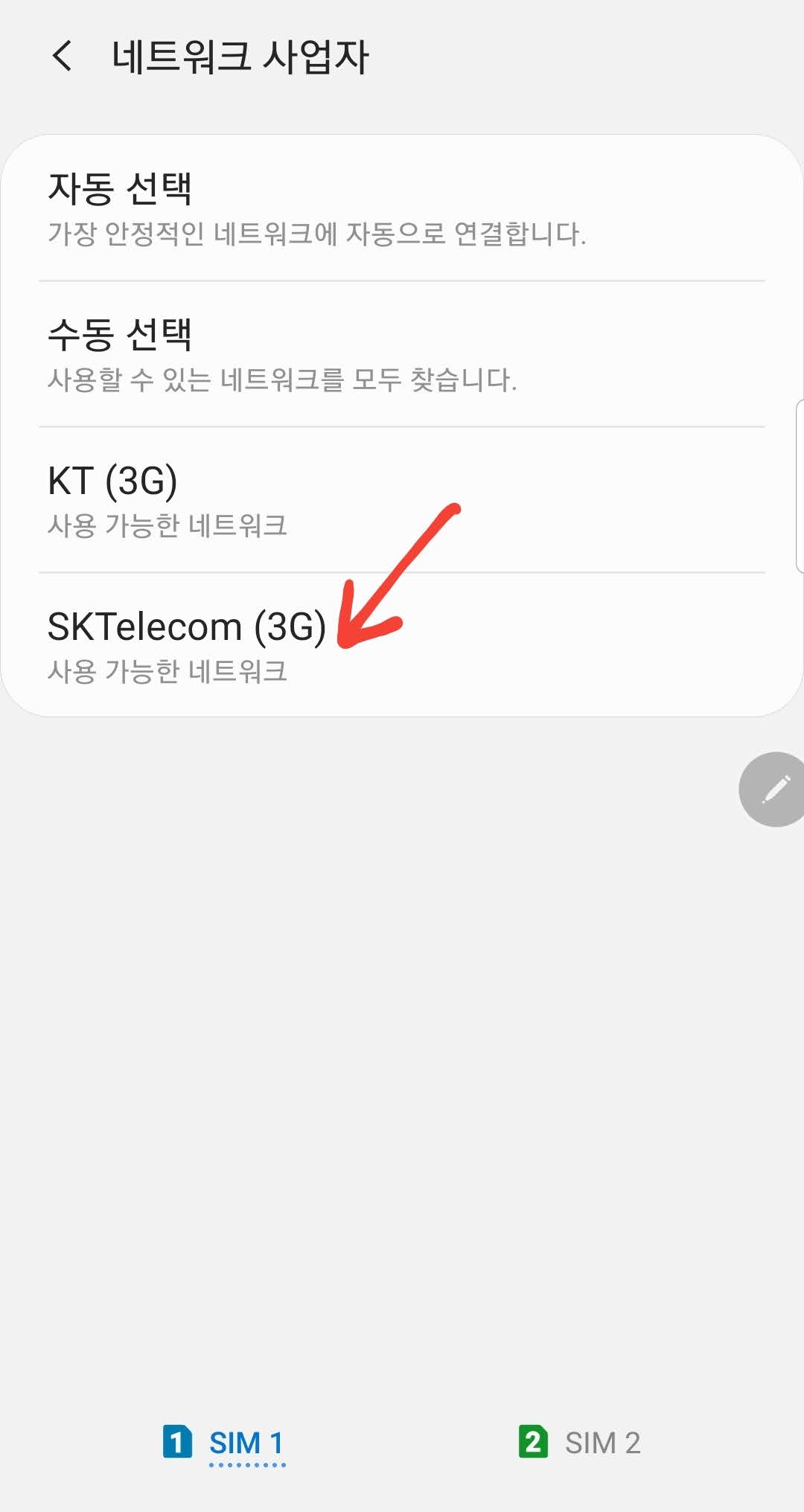 반대로도 아마 가능할듯. 만약 유심이 SKT신호를 잡고 문자 수신이 불가능하다면 같은 방법으로 KT를 수동선택하면 될듯.