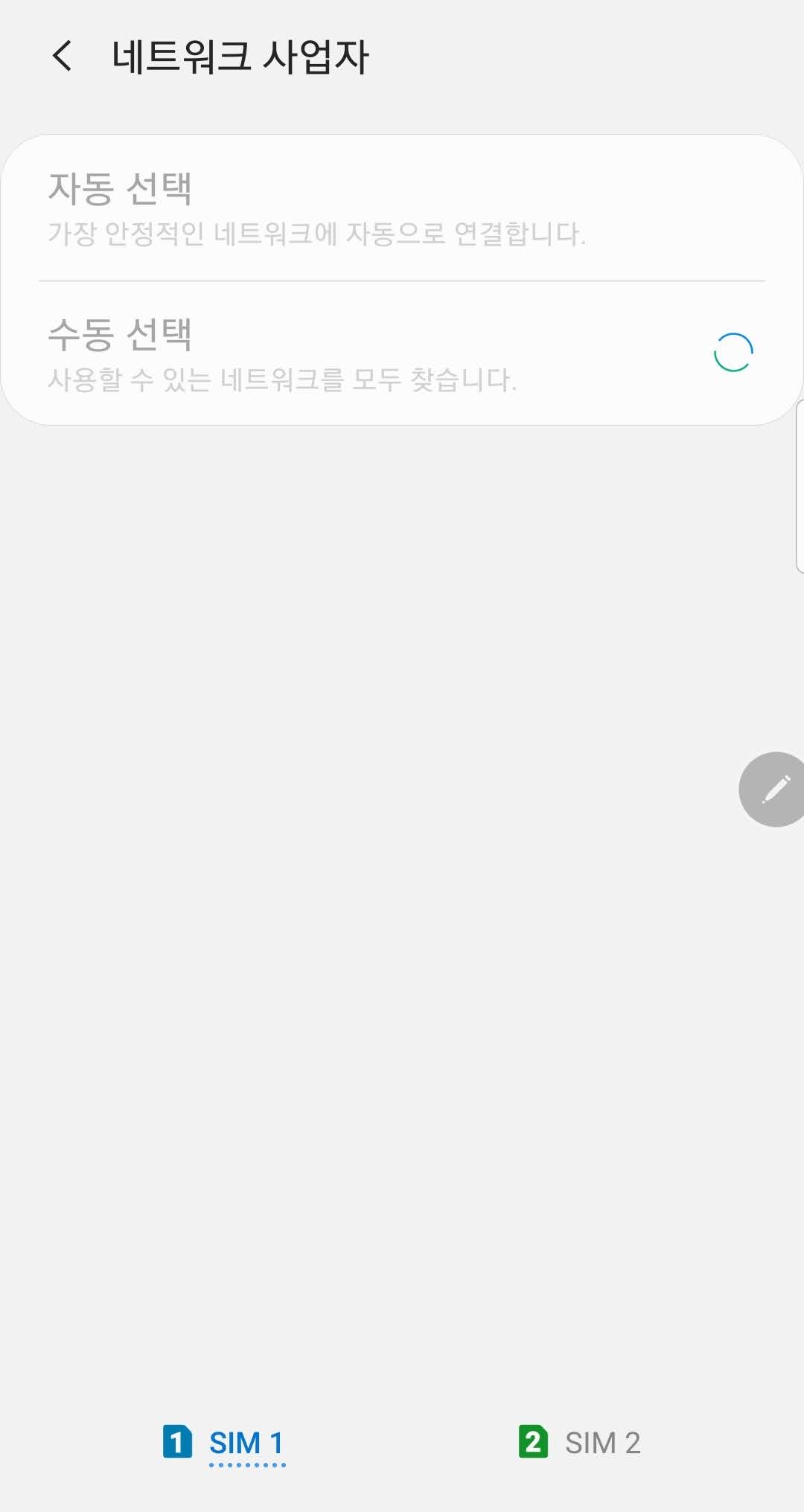 스크린샷은 듀얼심 모델 기준이라 유심카드가 두개가 나오는데, 이럴 경우 중국유심 슬롯(여기서는 SIM 1)을 선택하여 네트워크 사업자 수동 선택을 누른다.