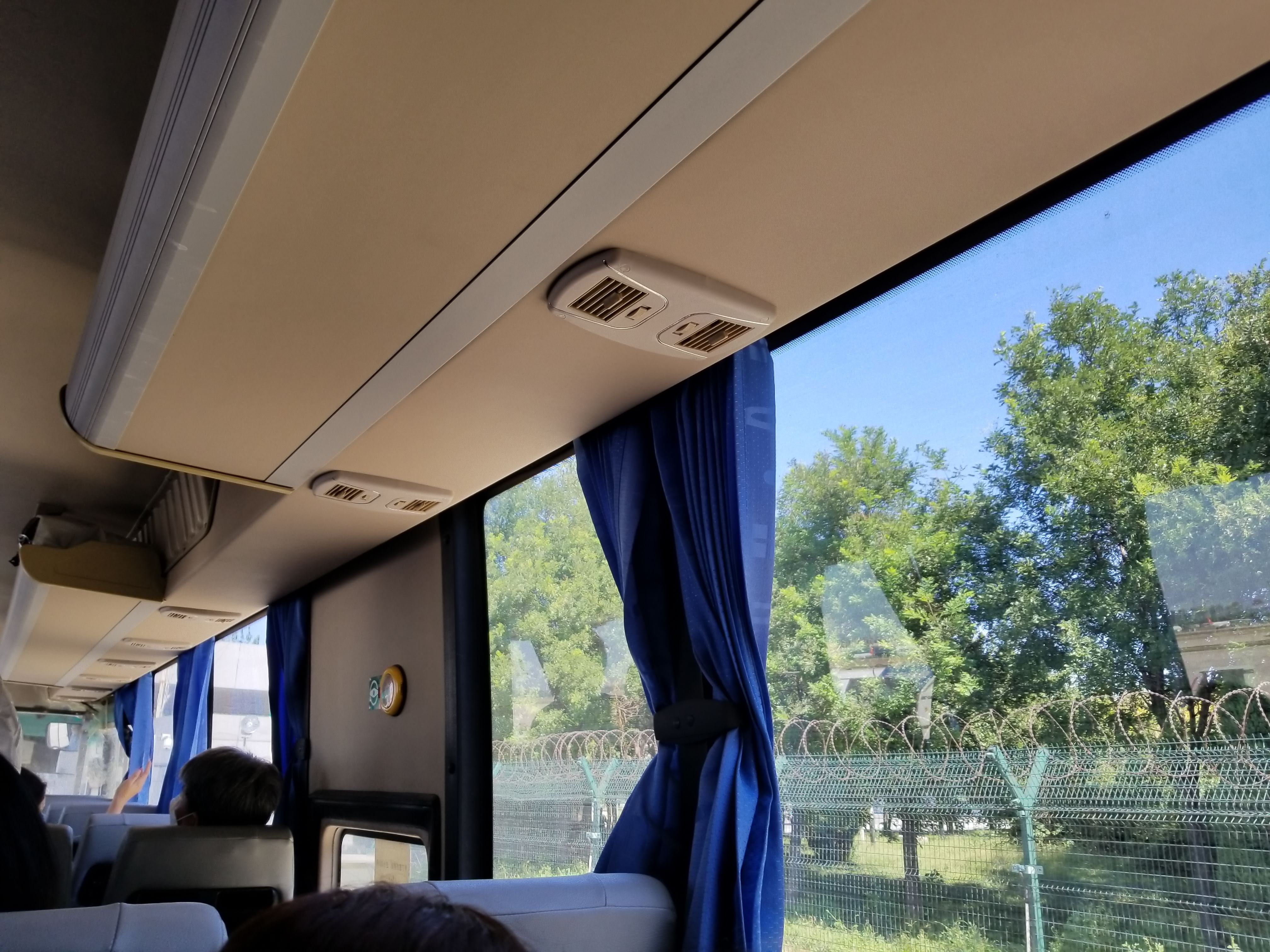 사람이 다 도착했다면 에스컬레이터를 타고 밑으로 내려와, 우리의 입국 과정을 함께 해준 초록색 종이를 공항 직원에게 건네주고 버스를 탑승합니다. 중국인과 한국인을 따로 구분해서 버스에 태우는데, 최종 목적지는 똑같다고 하는데 왜 나눠서 태운건지는 잘 모르겠습니다.