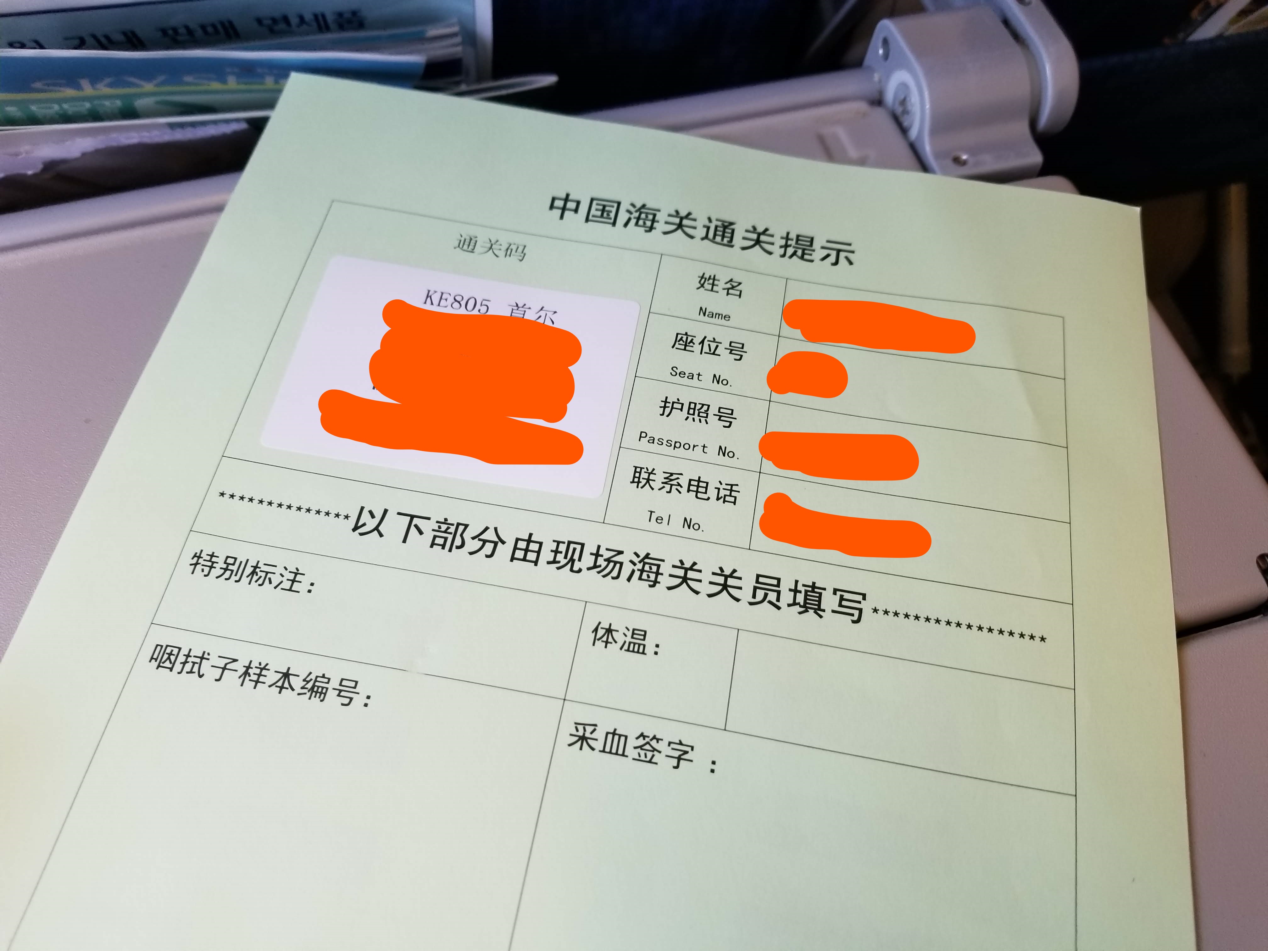 암튼 저 초록색 종이에 이름(중국어든 여권명이든 상관없는듯), 좌석 번호, 여권 번호, 전화번호를 적습니다. 밑에 나머지 부분은 세관 직원이 적는 부분이므로 건들지 마세요.