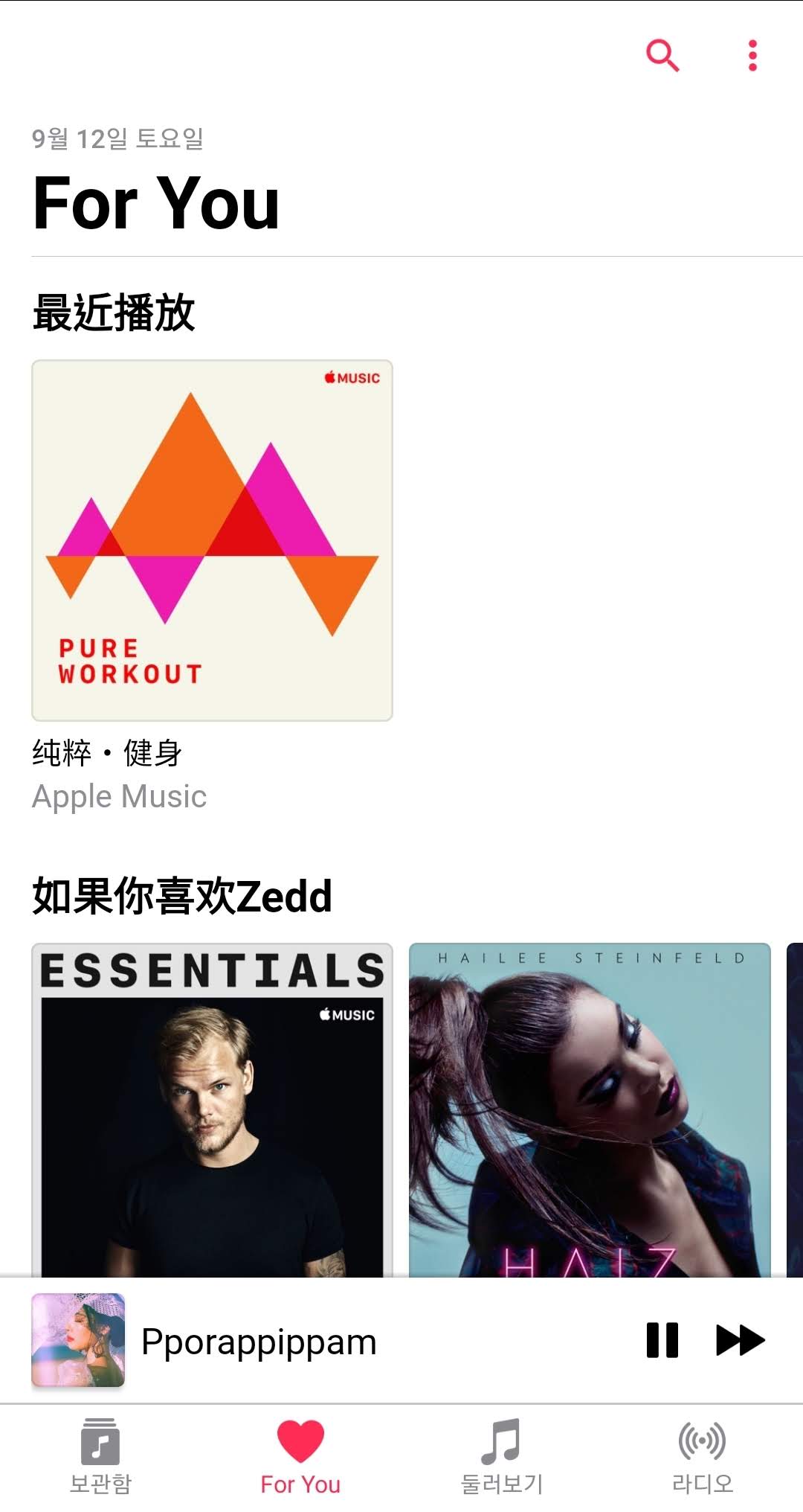 물론 애플뮤직이 아예 음악 재생에만 집중하는건 또 아니다. 음악 추천 기능 역시 왕이윈 못지 않게 잘 되어있는데, For You에서 내 음악 취향에 따라 재생목록을 추천해주거나, 둘러보기에서 신곡 정보 등 내 음악 취향에 무관하게 노래 정보를 전달해주는 코너도 있다. (근데 이 재생목록들, 알고리즘이 추천해주는게 아니라 사람이 직접 선별해서 배열하는거라고 한다...!)