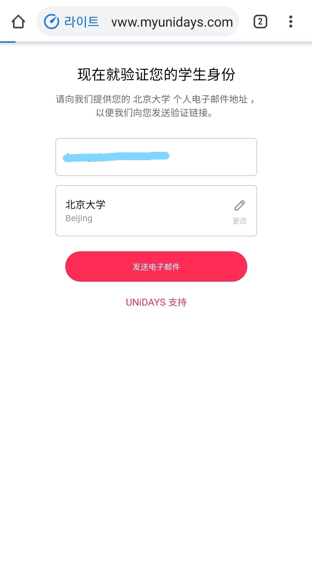 무슨 사이트로 넘어가서 대학 이메일과 대학교 이름을 넣고, 메일함에 도착한 이메일 인증 링크를 누르면 학생 인증이 끝난다.