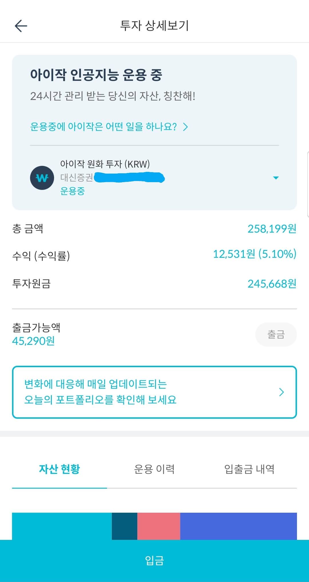 중국에 들어가기 전, 1년동안 내 한국 통장에 잠자고 있을 한국돈을 불리기 위해 주식보다는 안전한 펀드나 분산투자 등에 대해 알아보던 중, 플레이스토어에 AI가 알아서 투자해주는 자산관리
