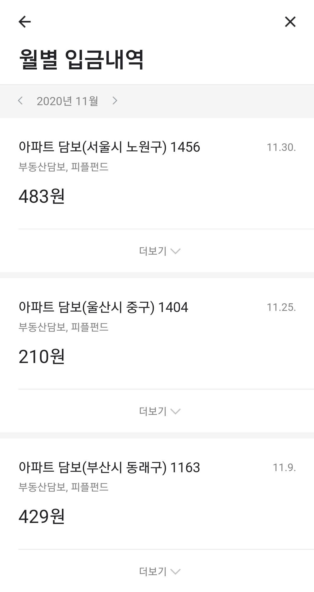 다만 딱 한번 상환금 입금이 지연된걸 제외하면 아직까지는 크게 문제없이 수익금이 따박따박 들어오고 있다. 한번에 고작 몇백원밖에 들어오지 않지만 일주일에 한번씩 이렇게 돈이 들어오는게 월세집 주인이 월세 받는 마냥 꽤 재밌기도 하고.