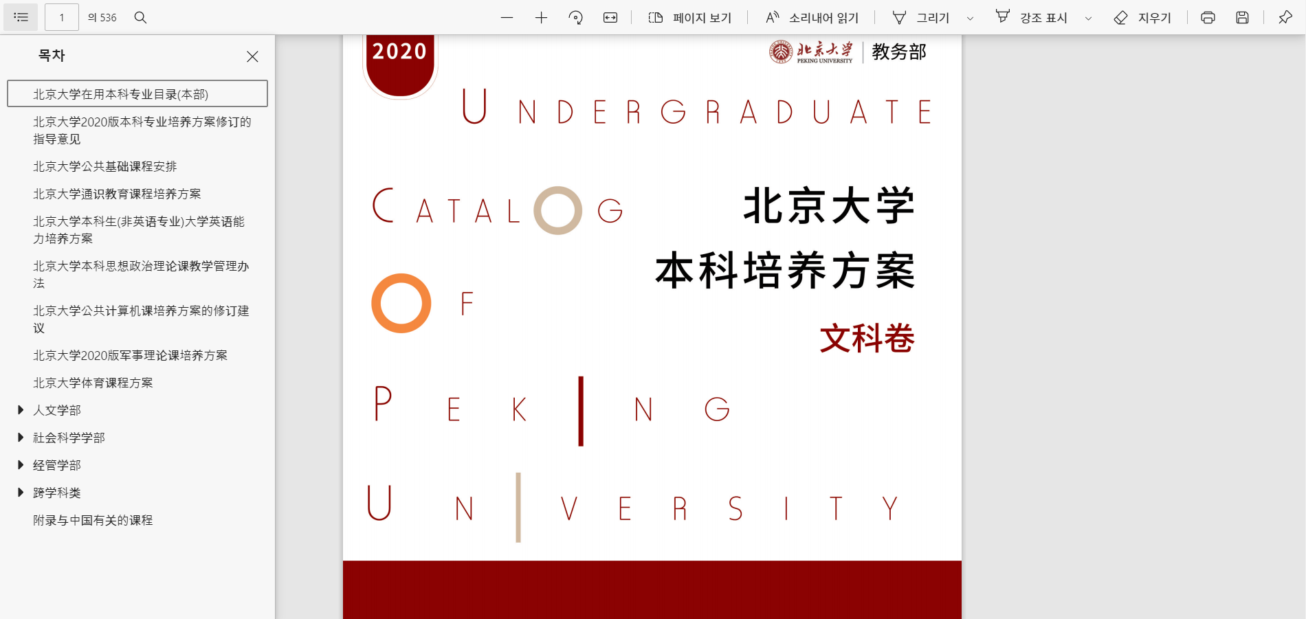 북경대/입시 - 북경대 커리큘럼을 읽어봐요