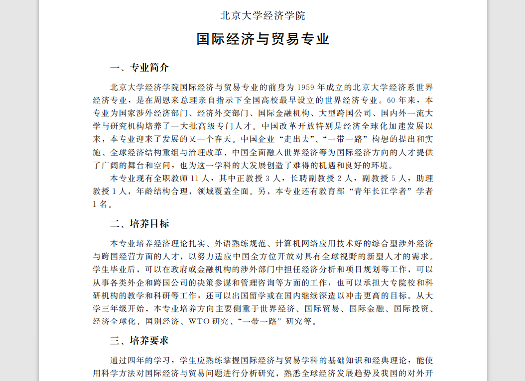 본문에서는 경제학과에서 유학생들이 가장 많이 선택한다는 국제경제 및 무역(国际经济与贸易)(이하 국제무역) 전공의 커리큘럼을 예시로 설명할텐데, 북경대의 모든 학과가 이와 완전히 똑같거나 크게 비슷할거라는 보장은 하지 않는다.