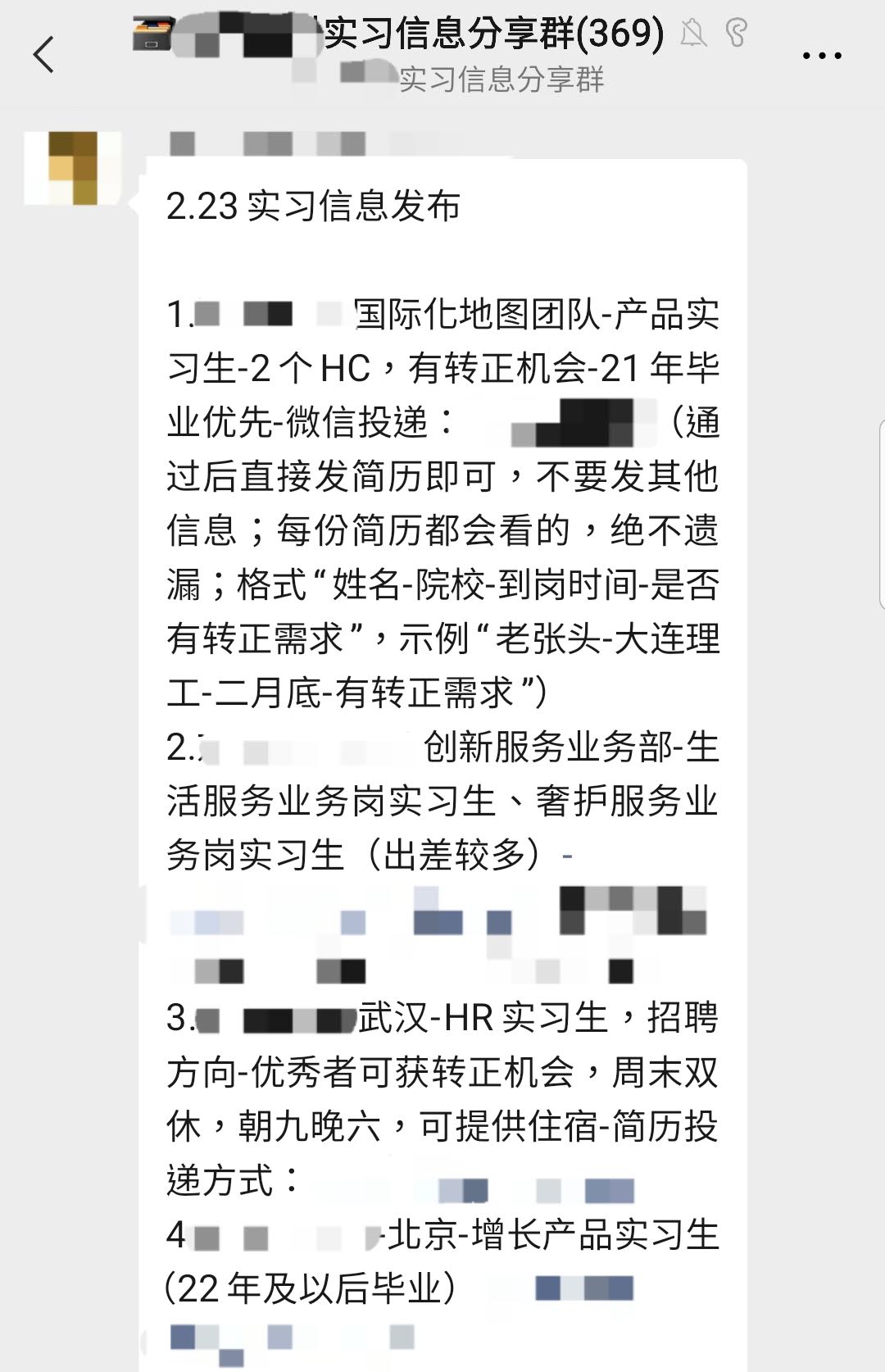 인턴 정보 공유 단톡방은 위에서 소개한 구인구직 사이트와 내부 추천제도의 종합체? 라고 할 수 있다. 그냥 구인구직 사이트에서 공개된 정보를 퍼다르는 경우도 있고, 아니면 인턴 후임자를 구하거나 대기업 HR이 직접 공유하는, 사실상 内推나 다름없는 귀한 인턴 정보들도 간간히 올라온다.