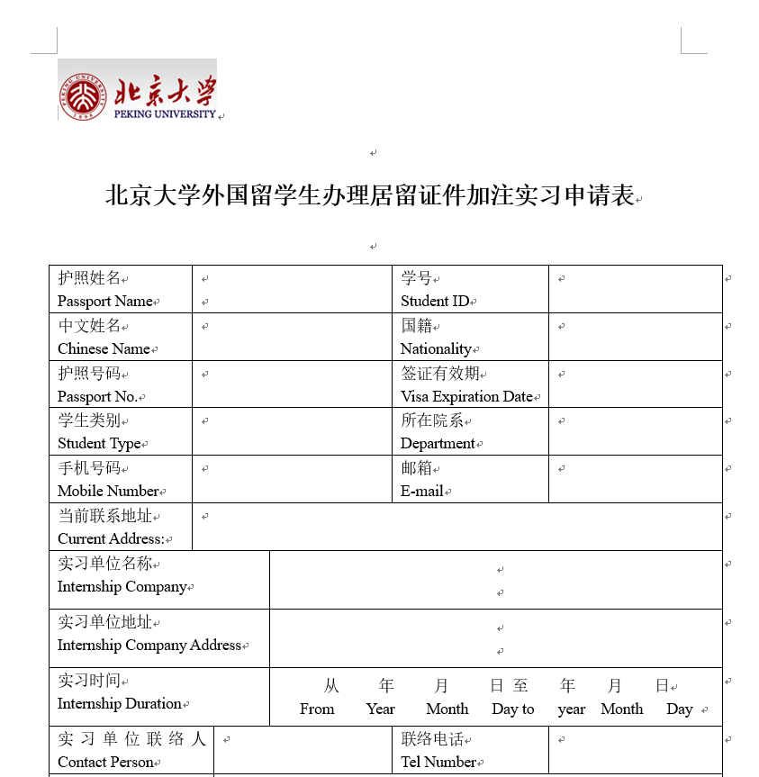北京大学外国留学生办理居留证件加注实习的相关规定-北京大学国际合作部留学生办公室