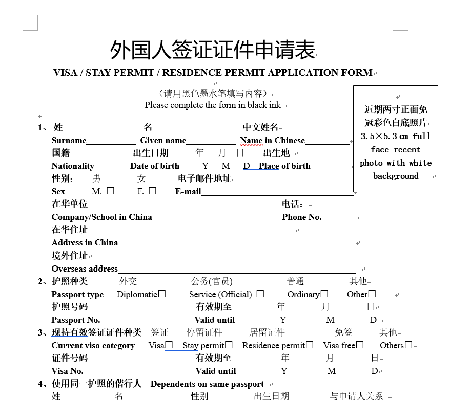 우리에게 익숙한 그 출입경 비자/거류증 신청서 맞다. 다만 인턴비자 신청은 일반 비자 신청과 다른게 두가지가 있는데,