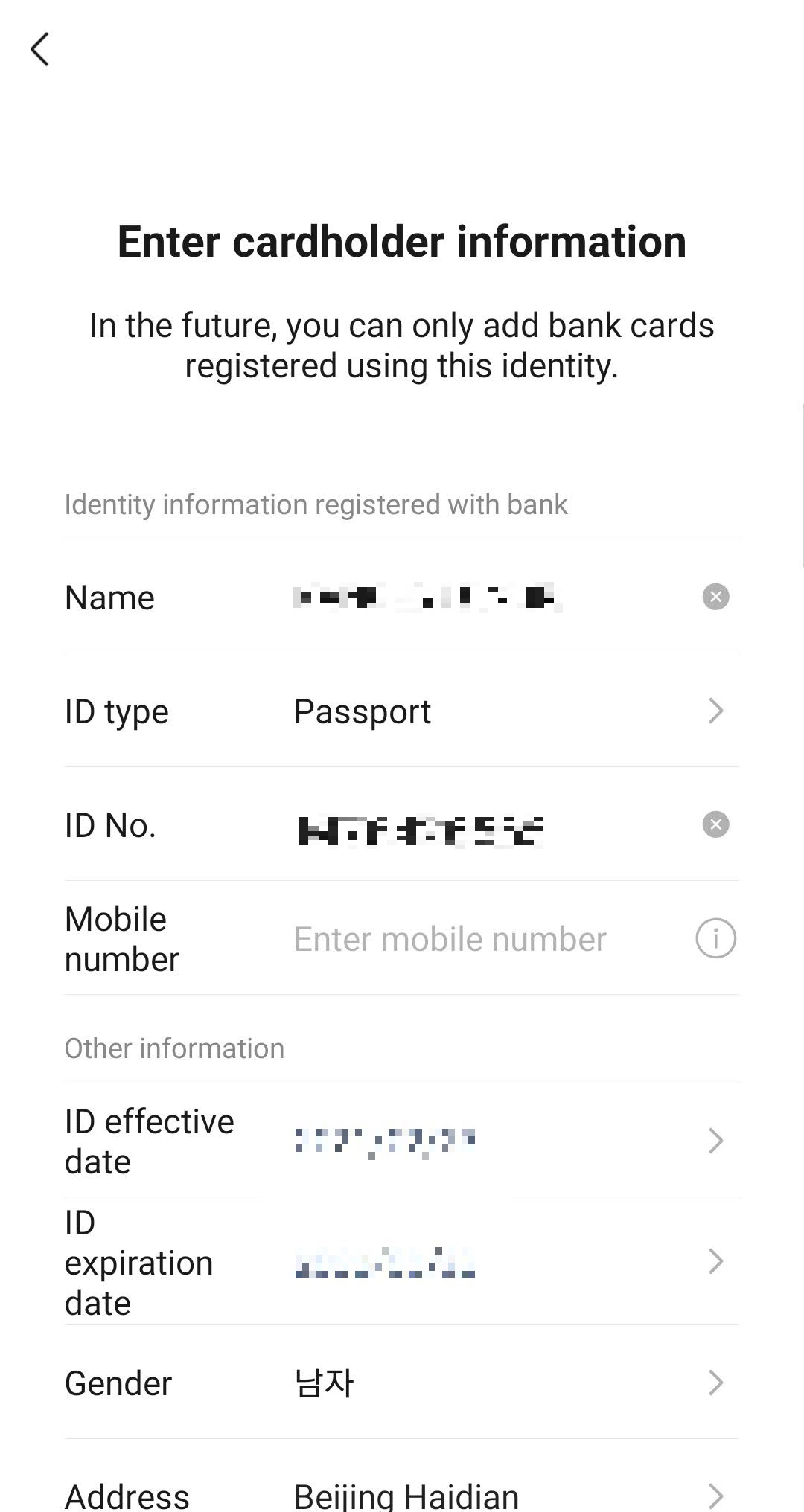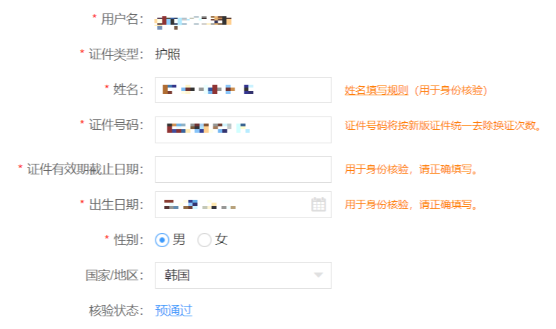 거기다가 "신분증 유효기간(证件有效期截止日期)"를 적는란이 새로 생겼는데, 외국인을 대상으로 실명인증 정보가 유효한지 더 엄격히 확인하겠다는 의미인것같다.