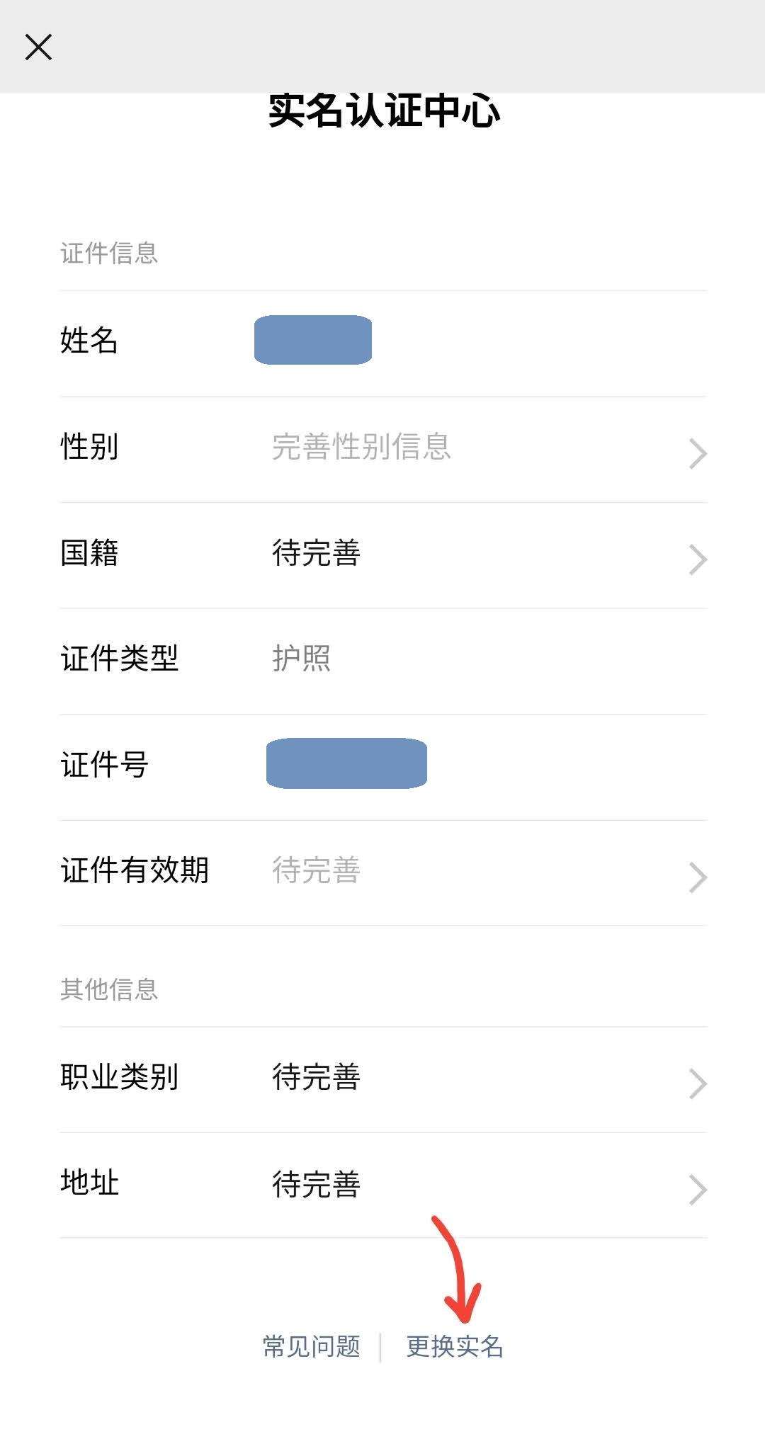 위챗페이는 알리페이처럼 "여권 번호 수정" 기능이 따로 없고, 아예 위챗페이를 탈퇴 후 재가입하는 번거로운 과정을 거쳐야한다.