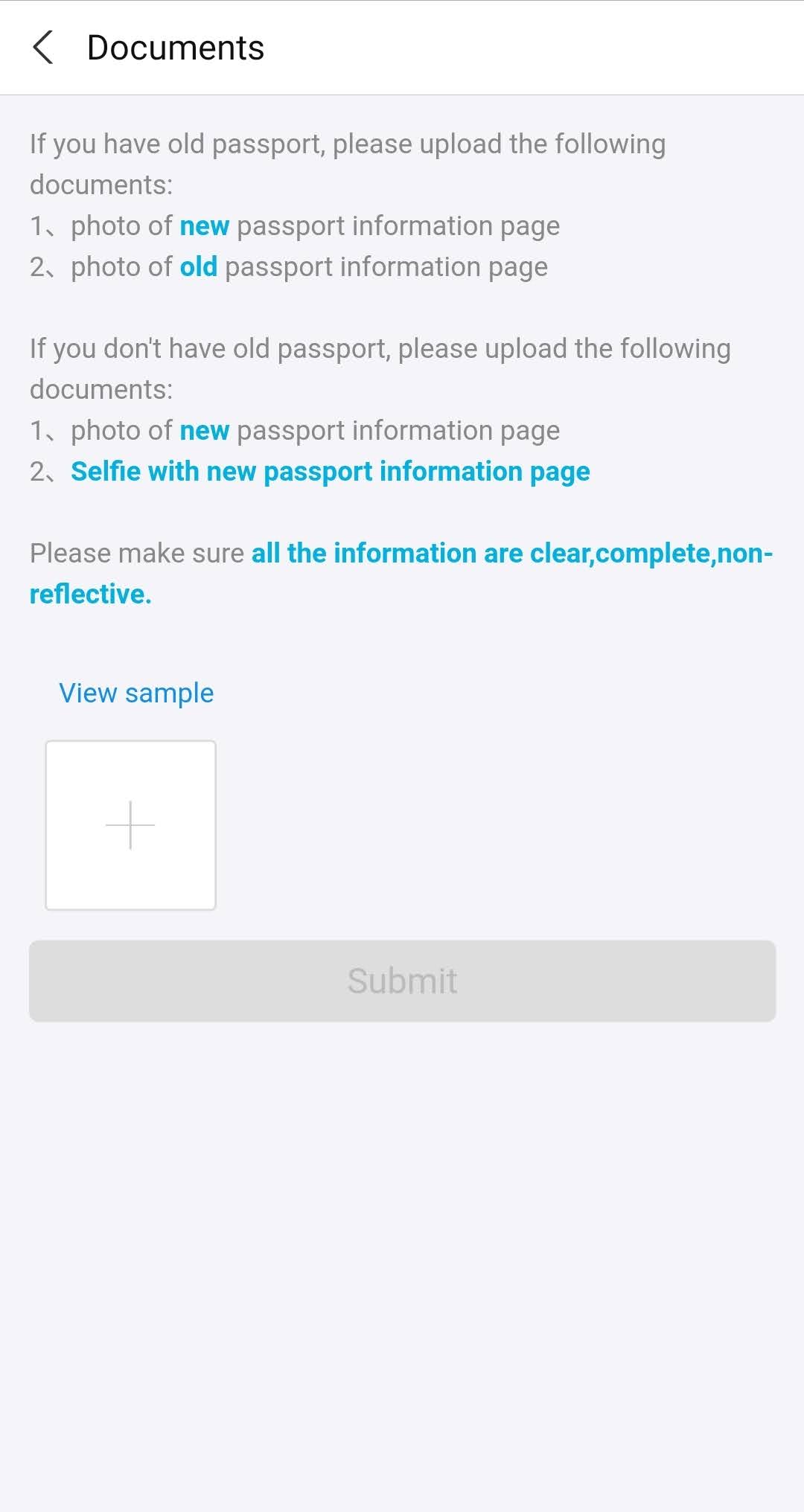 하단에 Request Documents는 여권번호 변경 증빙자료를 업로드하는 부분인데, 만약 구 여권을 소지하고 있다면 두 여권의 정보 페이지를, 만약 구 여권이 없다면 새 여권 정보 페이지와 얼굴과 함께 여권을 들고있는 사진(비대면 계좌개설할때 영상통화할때 신분증이랑 얼굴 인증하는것과 비슷)을 찍으면 된다.