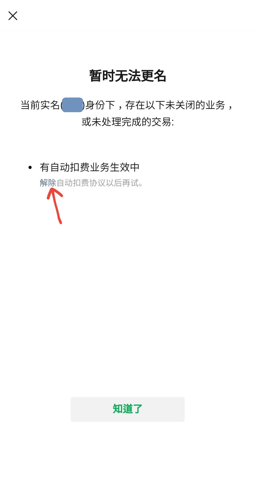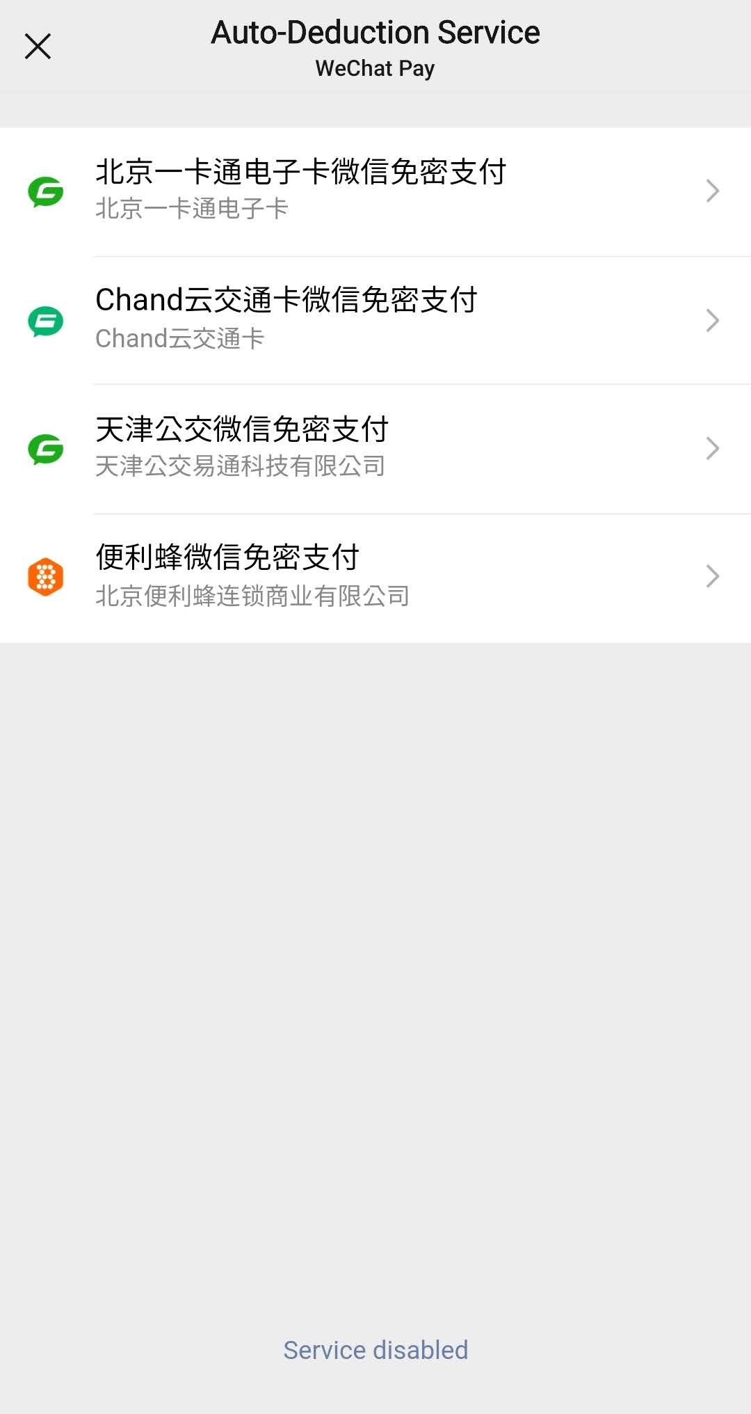 만약 자동결제 서비스가 하나라도 활성화되있을 경우 탈퇴가 불가능하므로 파란색 解除버튼을 눌러 활성화된 자동결제 서비스를 모조리 해지시킨다. 또한 위챗 잔액이 남아있을 경우에도 탈퇴가 불가능하지만 평소에 돈을 모조리 은행계좌에 넣는 나와는 큰 상관 없는 이야기.