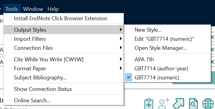 Tools-Output Styles에 들어가면 GBT7714 양식이 추가된게 확인된다...만!!!