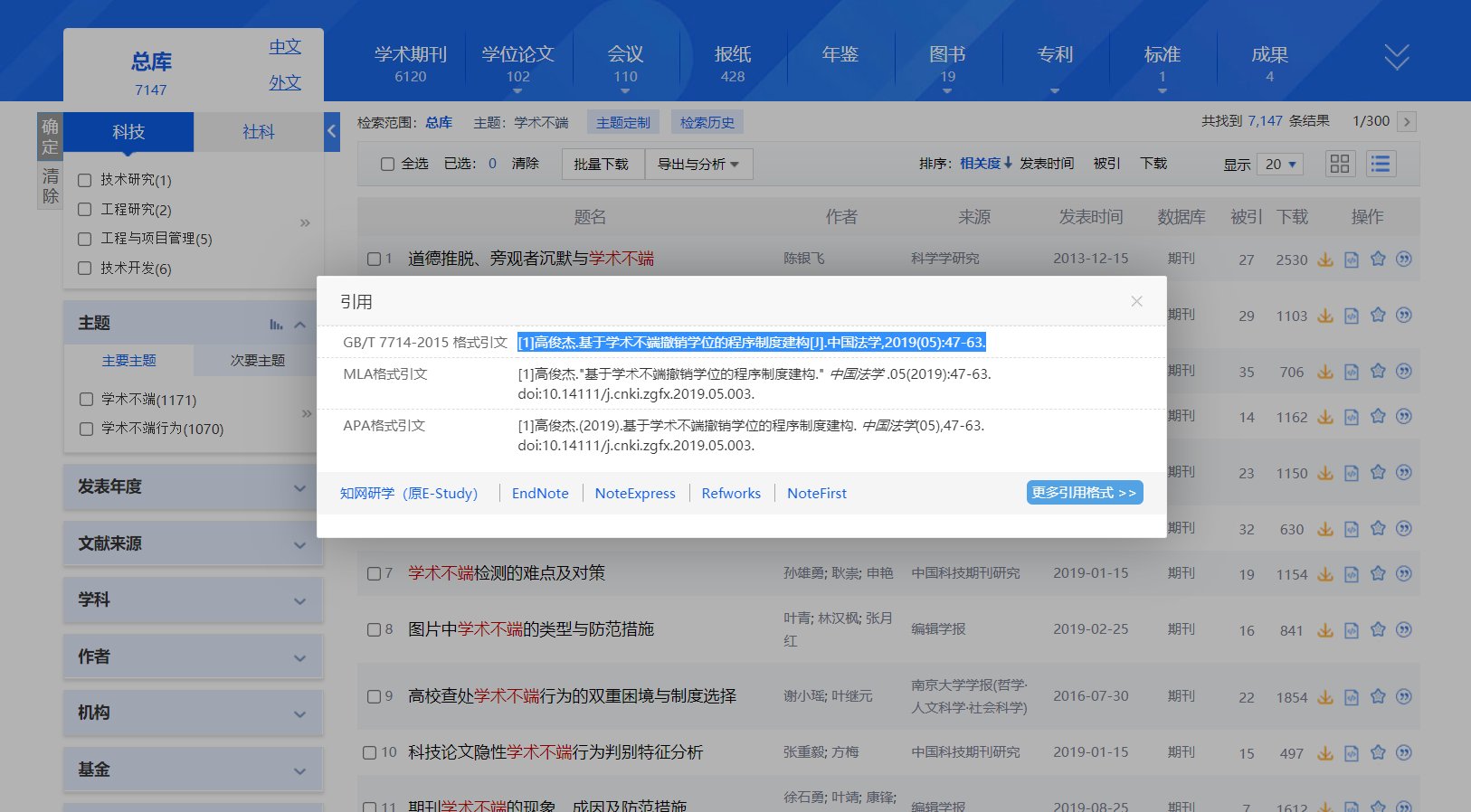 (저번 글 작성 이후 CNKI의 UI가 업데이트되어 검색창에서 바로 인용 출처 복사가 가능해졌다.)