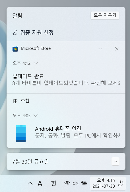 각종 알림음 역시 윈도우10에서는 경쾌한 분위기였다면, 윈도우11에서는 좀 더 몽롱하게 바뀌었다.