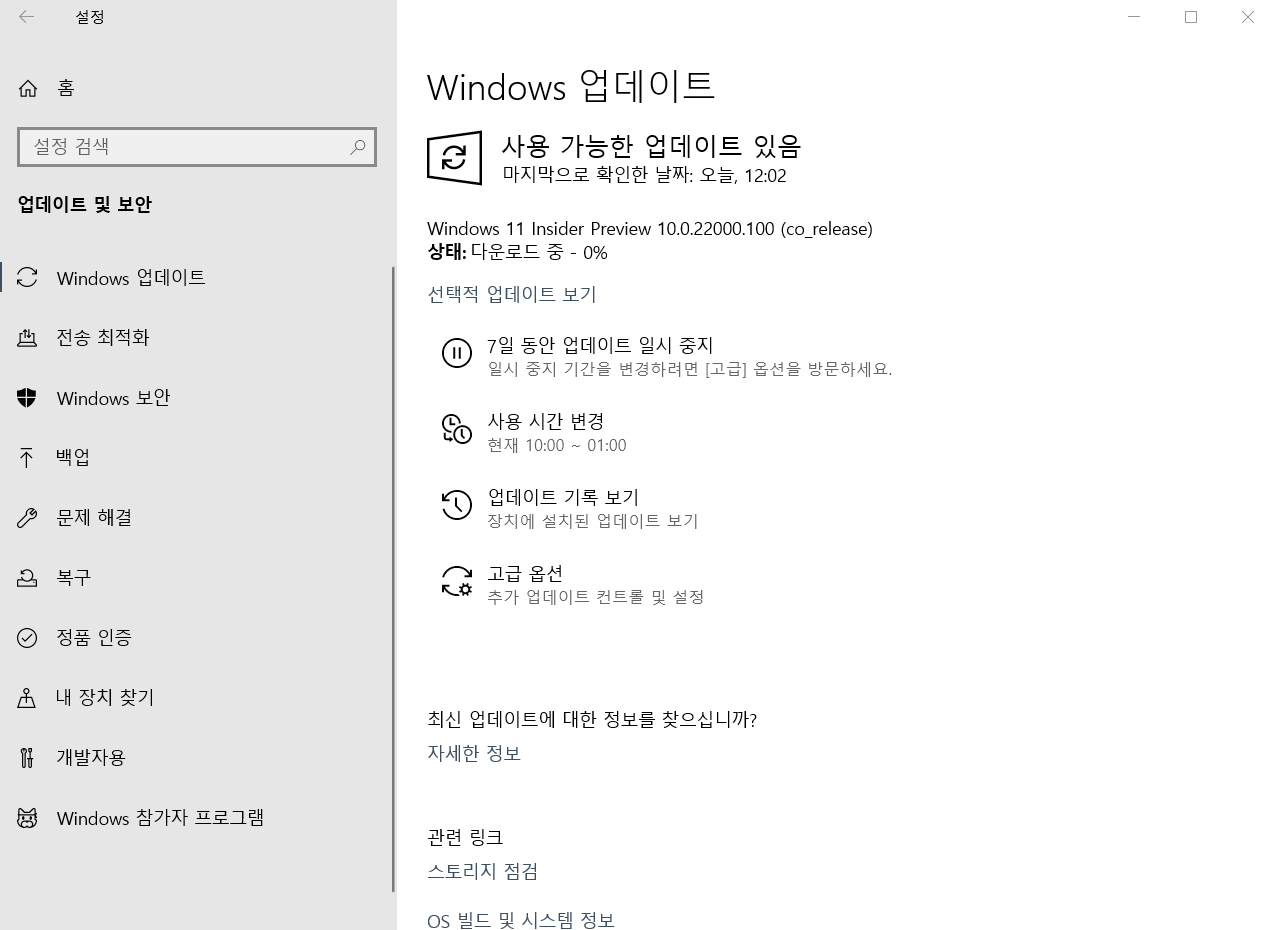 윈도우11 뉴스 나온 이후 참가자 프로그램 가입하고 (Dev채널은 실사용중인 노트북에 사용하기엔 불안정해서) 베타 채널 선택해놓고 안정화 버전 나올때까지 목 빠지게 기다리고 있었는데, 이번에 베타 채널로 배포 시작했다는 기사 뜨자마자 바로 설정에 들어가 업데이트를 확인했다.